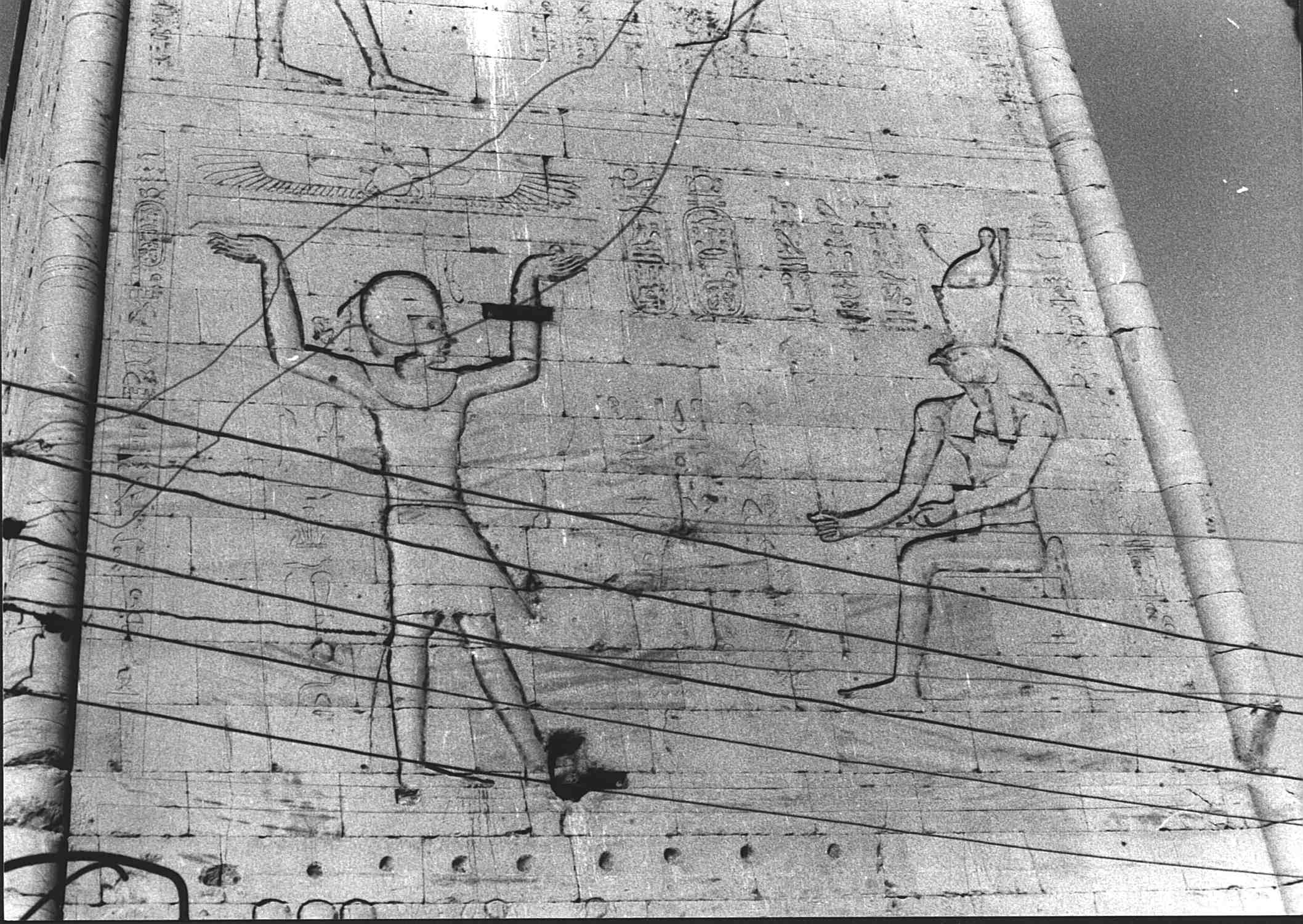 Den Gestützten (Himmel) stützen. "(Der Gestützte) ist gestützt auf meinen Armen; Harachte, komm und betritt ihn. Der Gefestigte (Himmel) ist heil, keine %Feinde& sind (mehr) darin. Dein Schutz sei <um>* deinen Sohn, Osiris, (denn) dein Sohn bin ich, der für dich deinen Ka hochhebt. Herr der Götter, dein Himmel für dich!"