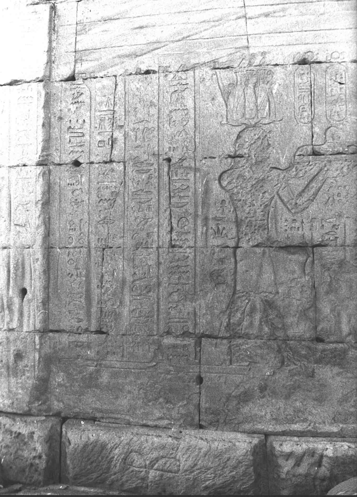 [...] Haj m wnmt nhm m jAbt tknj tkn.f pA njk jrt ¡r jp.tj km.tj m ctwt.c kA pcj m jwn Haa [...] .. [..] wbn.f m Sw nb hp baHj.f tA pn n wr rnnwt Abx n kA.f r nAj.w mAH n cSp nAj.w Xmc nAj.w amaAt nt hbnj jw.w Hr jrt xbt jw.w tx jtn jtj sp 2 Xnm.k jbd r 15 nt