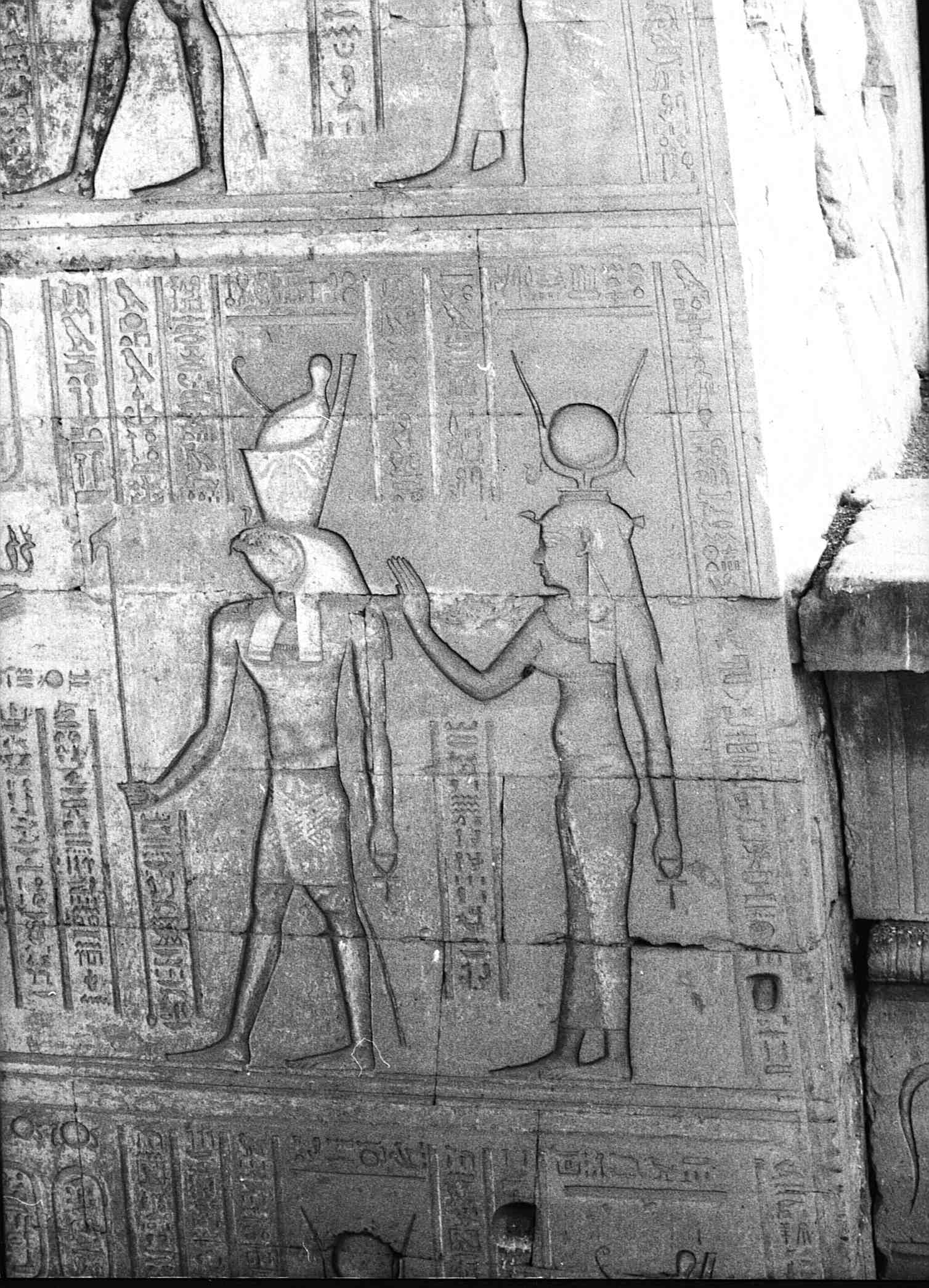 VIII, 056, 12-13 Horus (2) rdj.j n.k tAwj nbw xAb n bAw.k xAcwt nbt xr Xr Tbwj.k "Ich gebe dir, daß alle Länder gebeugt sind vor <deiner> Macht und alle Fremdländer gefällt unter deinen Sohlen sind." Photos Contrast Brightness Chassinat
