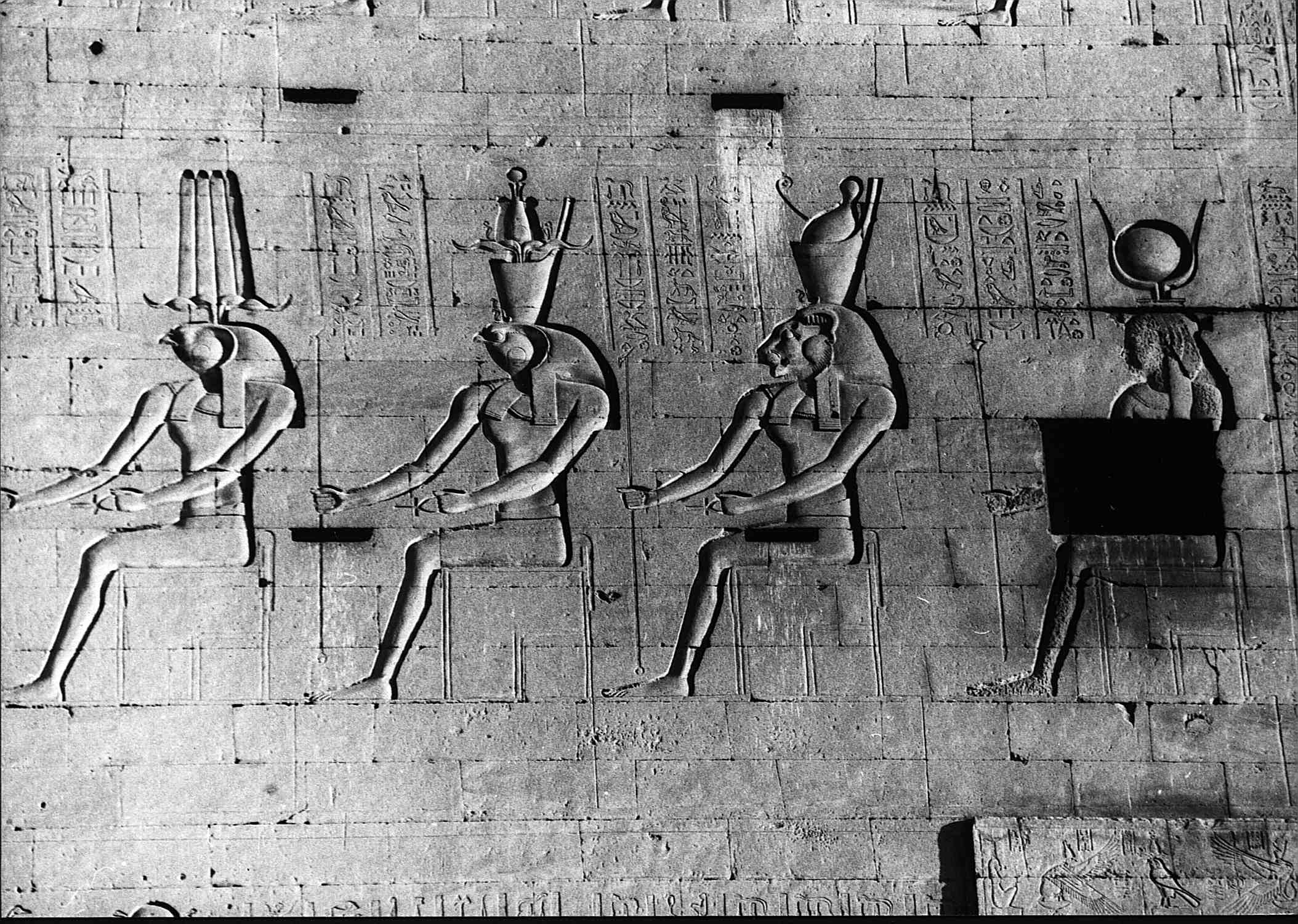 Worte zu sprechen von Horus Behedeti, dem großen Gott, dem Herrn des Himmels, der die Fremdländer niedermetzelt, der große Falke, der die <Bös>artigen schlägt, der Herr des Wütens, der die Feinde gepackt hat.
