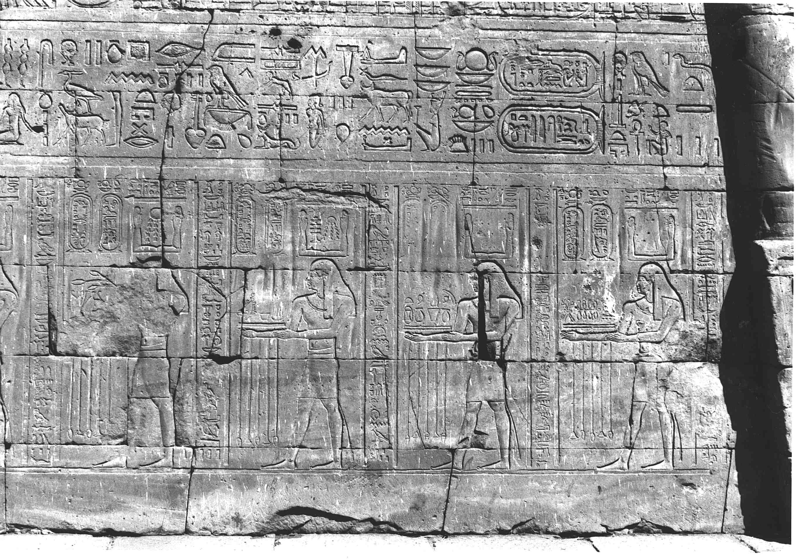 XVIII: Der Ka-des-Leuchtens "Der König von Ober- und Unterägypten, der Herr der beiden Länder öPtol. XII.Ä, der Sohn des Re, der Herr [der Kronen] öPtol. XII.Ä, ist zu [dir] gekommen, Horus %Behedeti&, großer Gott, Herr des [Himmels], damit er dir den Ka-des-Leuchtens bringe, der die Götter leuchten läßt, in dessen Hand alle göttlichen Kronen sind, <der>* die Würde des Horus mit deinem Haupt vereint <hat>*, so daß du an der Spitze der Untertanen erstrahlst."