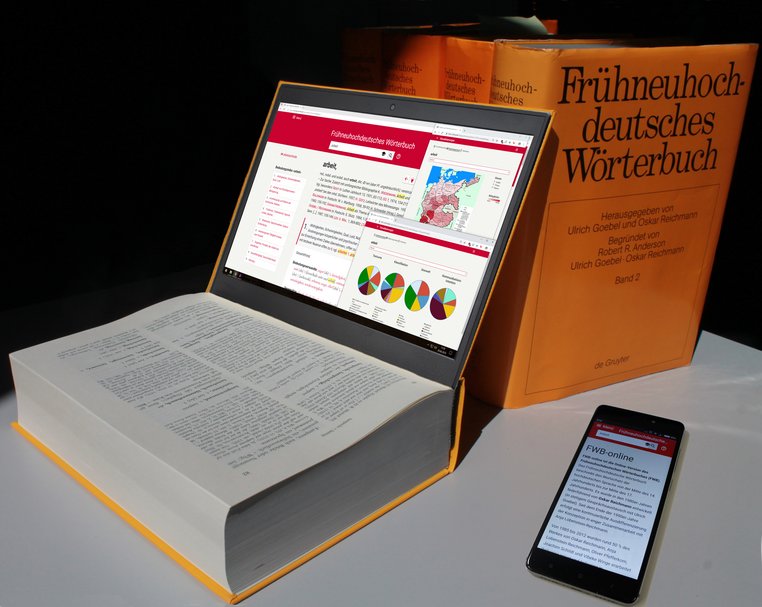 Heute arbeitet die Forschungsstelle Frühneuhochdeutsches Wörterbuch mit einem auf ihre Bedürfnisse angepassten Redaktionssystem, das zunächst ein auf die Buchherstellung optimiertes Datenformat erzeugt, das die Basis für die Satz-PDFs des gedruckten Wörterbuchs bildet. Auf der Basis des so entstandenen typographisch ausgezeichneten Satz-XMLs entsteht dann in zahlreichen komplexen Konvertierungsschritten eine semantisch hochangereicherte XML-Fassung der Wörterbuchdaten, die die Grundlage für die Online-Version des Frühneuhochdeutschen Wörterbuchs bildet. Dass bei der Aufkonvertierung der Druckdaten das Hauptaugenmerk darauf liegt, die im Text des Wörterbuches verborgenen Informationsschätze (Informationsprogramm, Verweise, Vernetzungen usw.) besser zugänglich zu machen, als das Buch dies kann, gehört zu den primären Zielen der Forschungsgruppe für die Online-Version.
