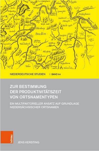 Jens Kersting: Zur Bestimmung der Produktivitätszeit von Ortsnamentypen. Ein multifaktorieller Ansatz auf Grundlage niedersächsischer Ortsnamen. (Niederdeutsche Studien 64). Köln/Wien: Böhlau Verlag 2023. 332 S. (ISBN 978-3-412-52812-6).