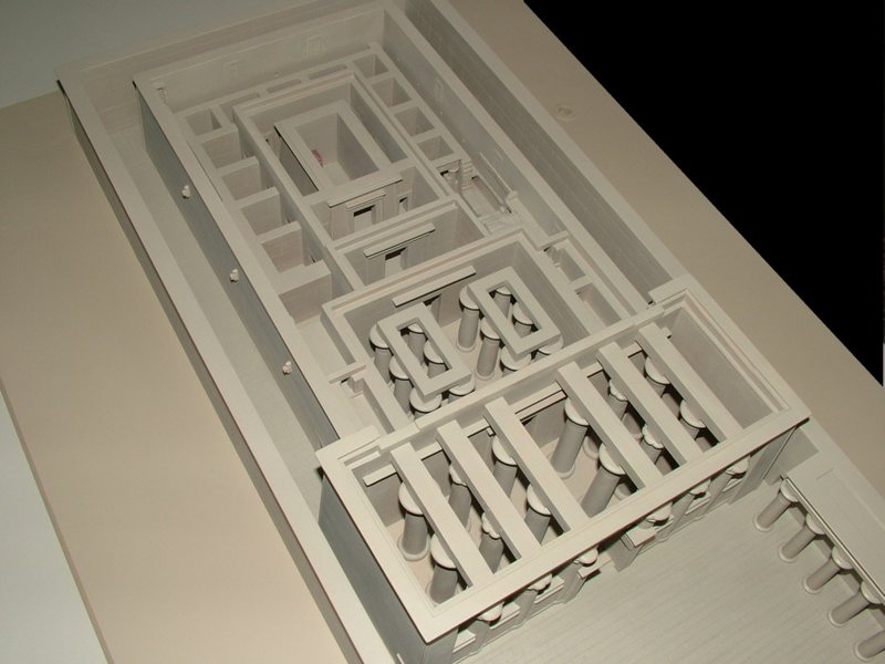 Between October 2005 and February 2006 Dr. Uwe Bartels built a model of the temple of Edfu in a scale of 1:150. The model consists of five modules (pylon, girdle wall, naos, pronaos and base) - each one can be removed to get the best view to all parts of the temple. Additionally the roofs of the pronaos and naos as well as the northern wall of the western pylon tower were made out of glass so the staircases and rooms of the temple can be seen.