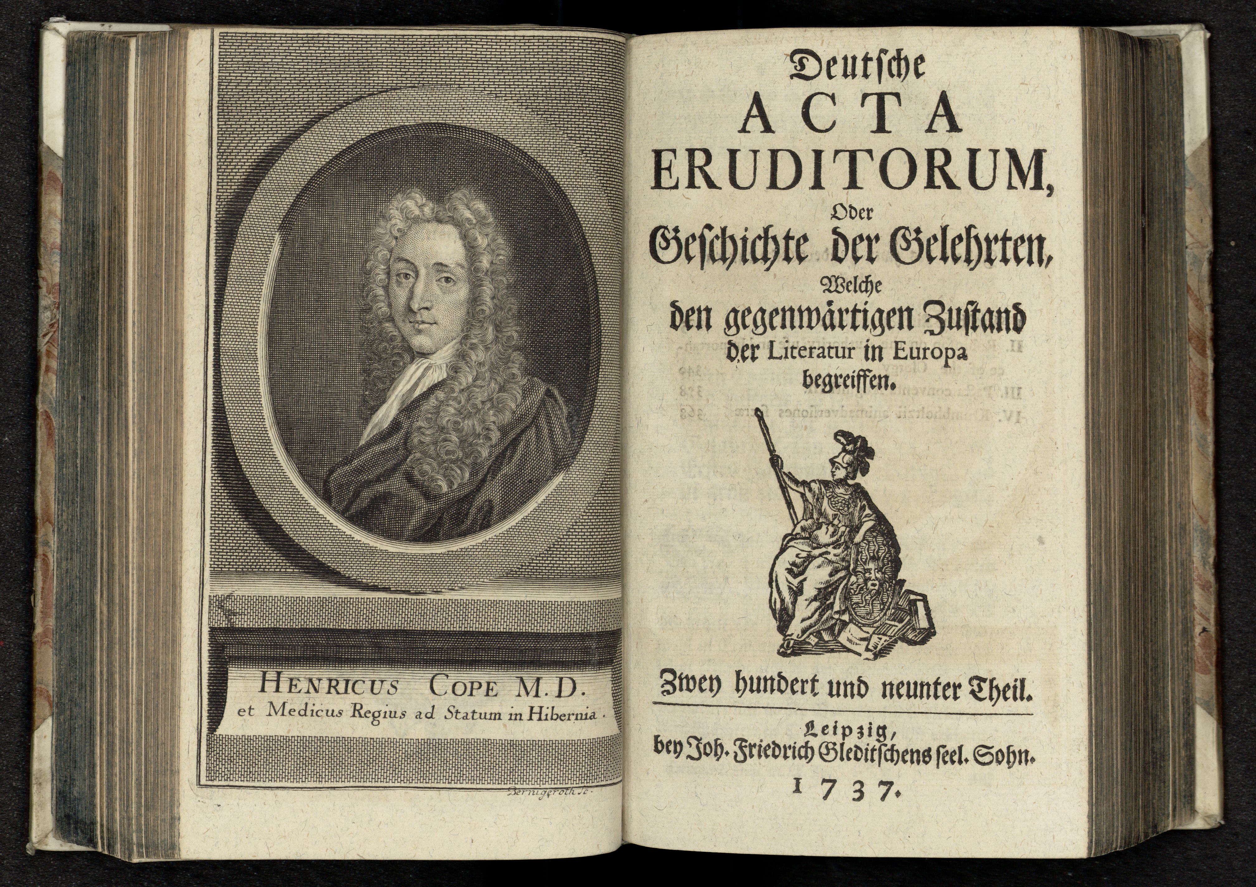 Porträt von Cope, Henry  (Deutsche Acta Eruditorum., 1737, 209. T., ungez. Bl. vor S. 305. [Doppelseite])