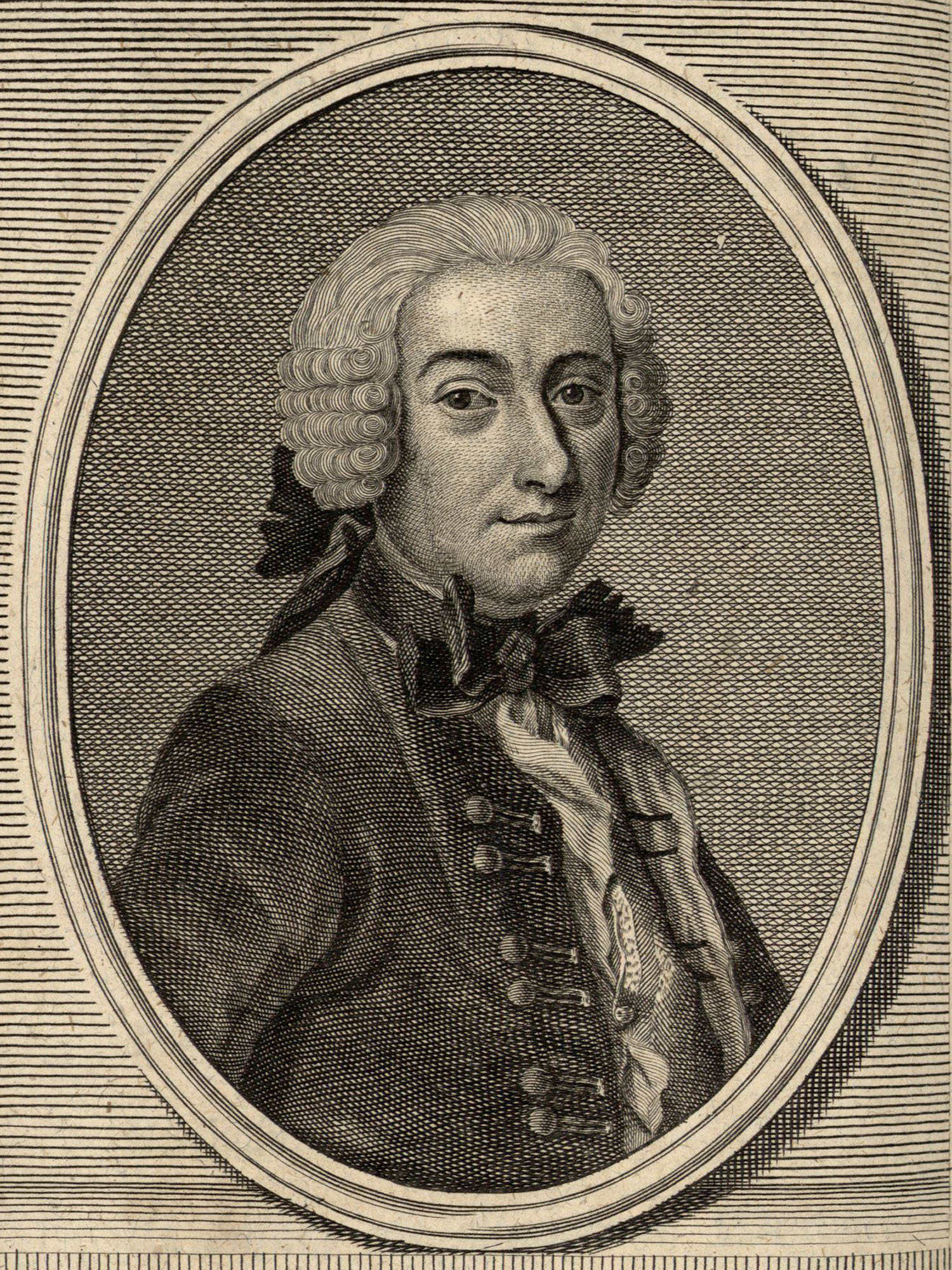 Porträt von Desforges-Maillard, Paul  (Zuverläßige Nachrichten von dem gegenwärtigen Zustande der Wissenschaften., 1748, 106. T., ungez. Bl. vor S. 736. [Doppelseite])