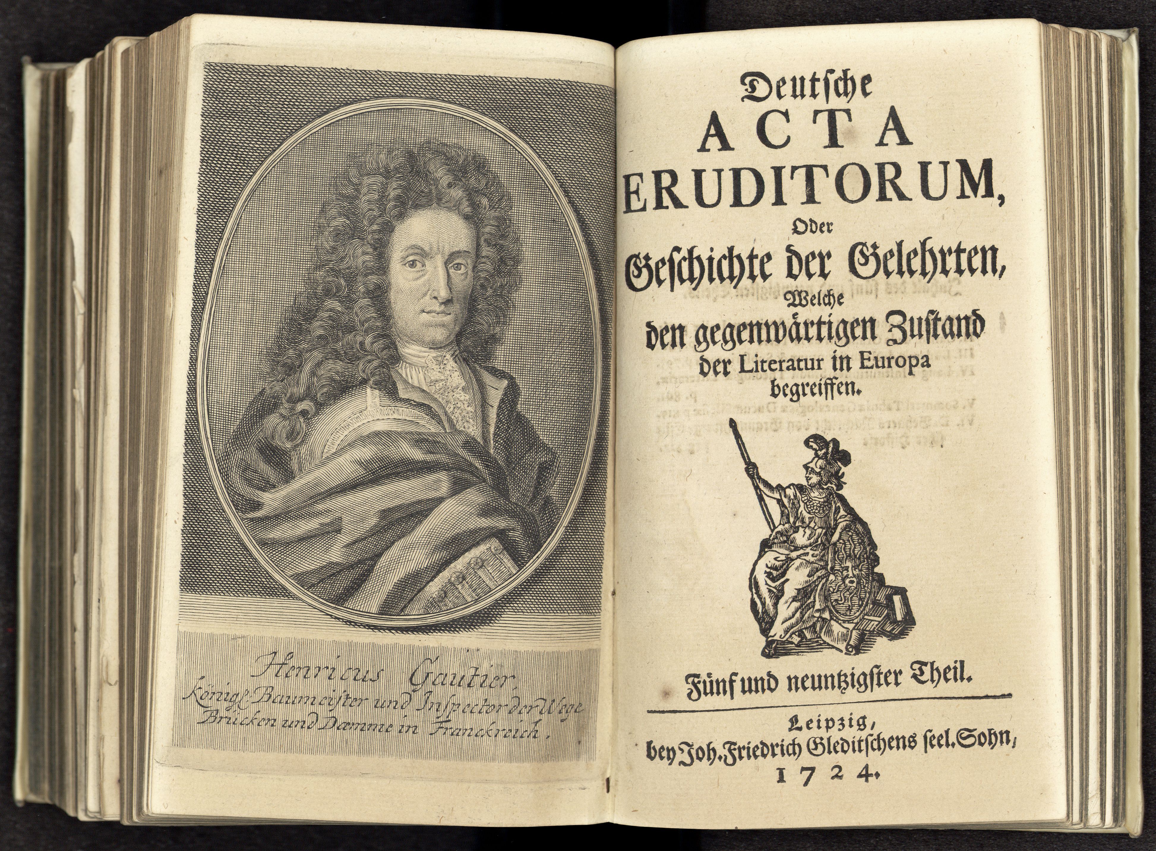 Porträt von Gautier, Hubert  (Deutsche Acta Eruditorum., 1724, 95. T., ungez. Bl. vor S. 761. [Doppelseite])