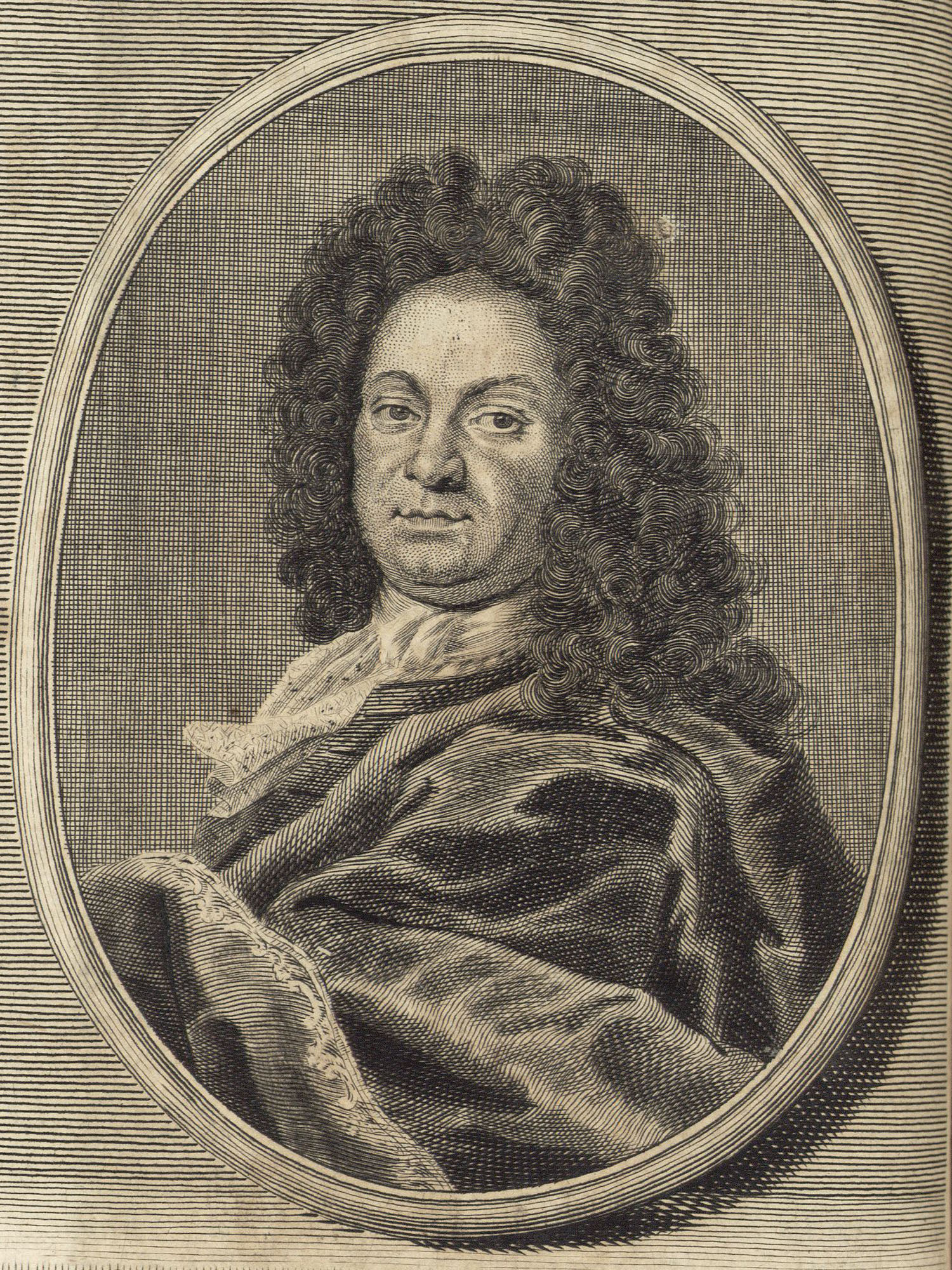 Porträt von Köhler, Johann David  (Deutsche Acta Eruditorum., 1722, 81. T., ungez. Bl. vor S. 609. [Zuschnitt auf Schmuckrahmen])