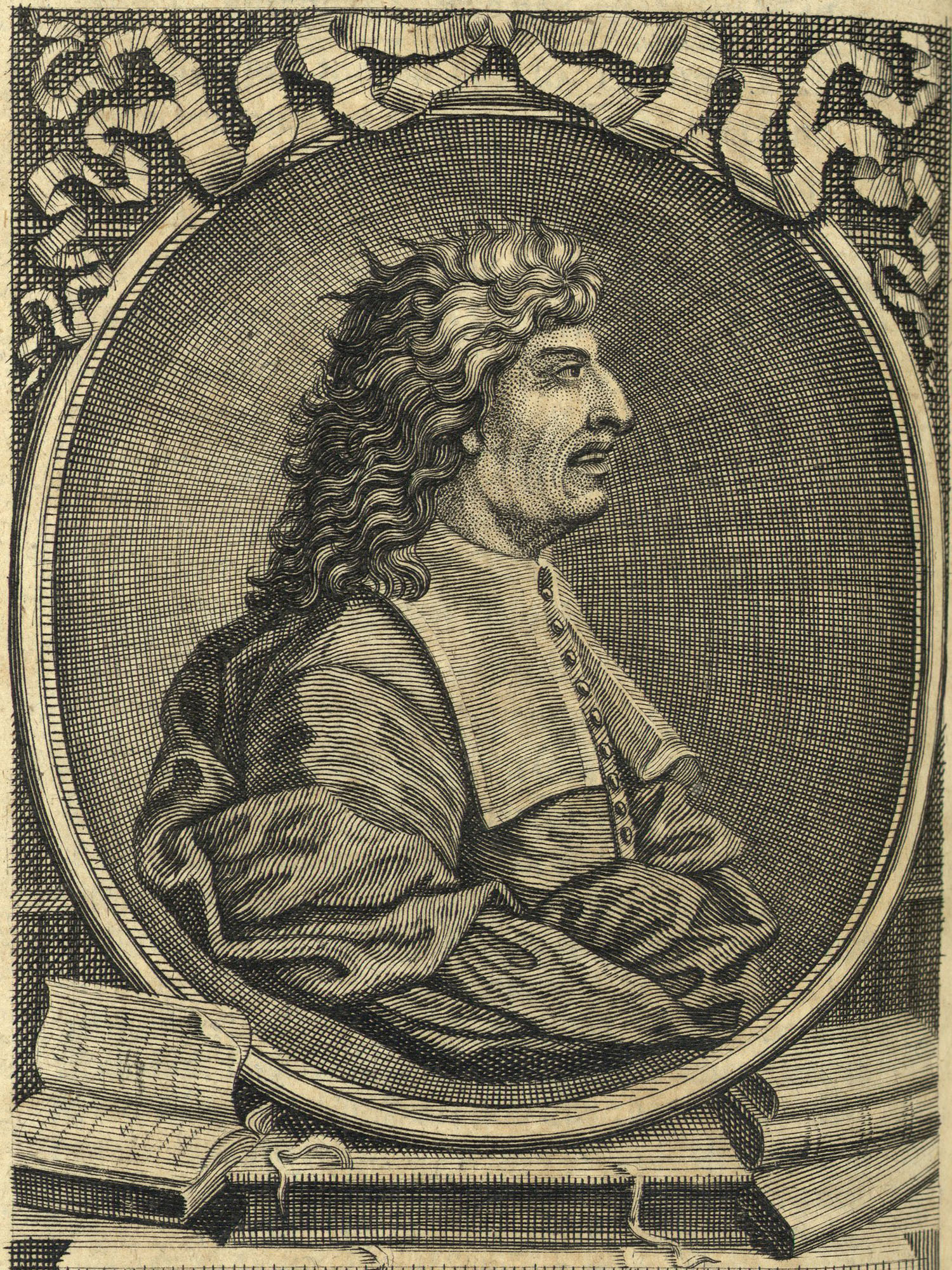 Porträt von Magliabechi, Antonio  (Neuer Bücher-Saal der gelehrten Welt., 1711, 10. Oeffn., ungez. Bl. vor S. 729. [Zuschnitt auf Schmuckrahmen])