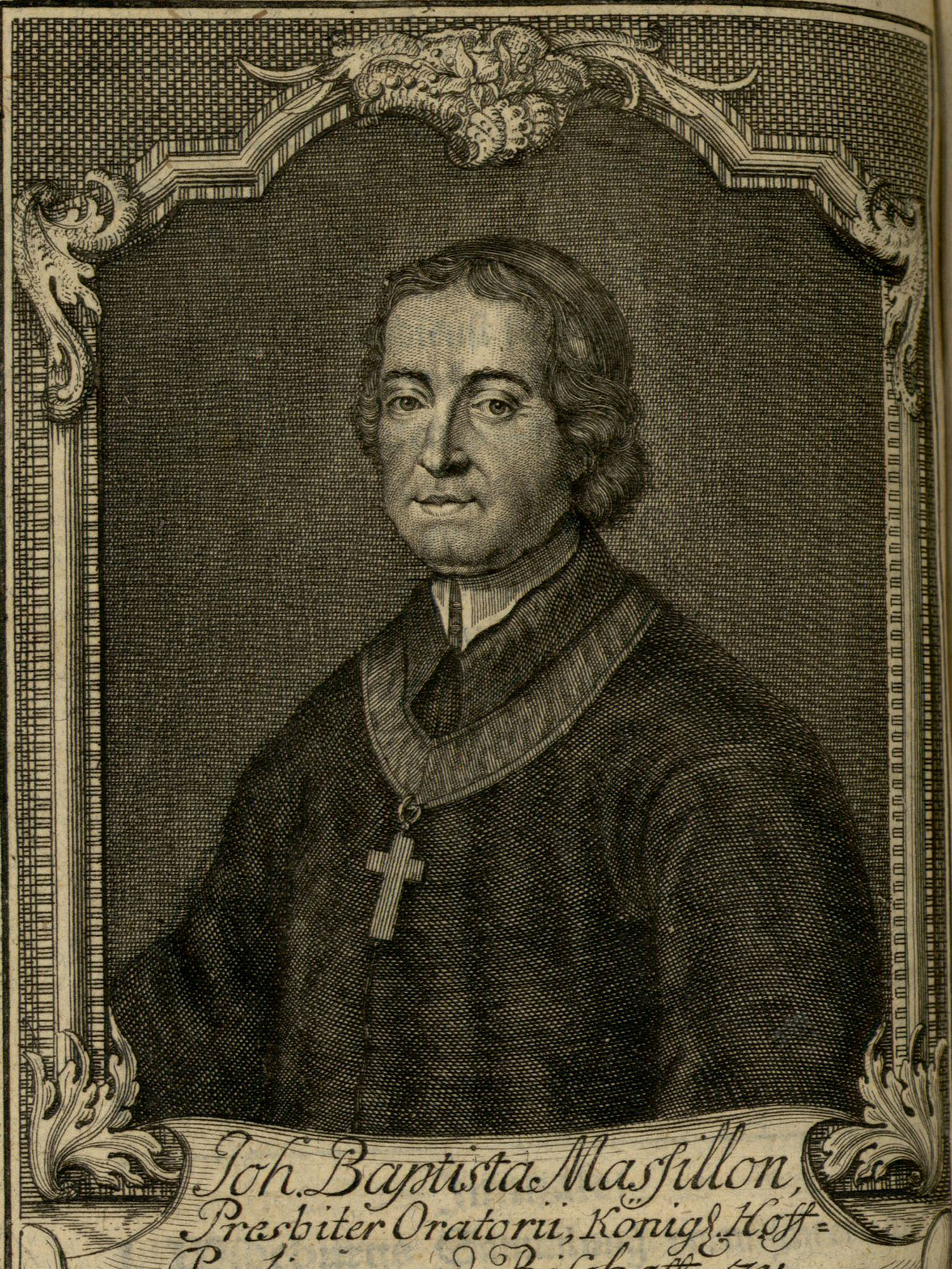 Porträt von Massillon, Jean Baptiste  (Zuverläßige Nachrichten von dem gegenwärtigen Zustande der Wissenschaften., 1752, 151. T., ungez. Bl. vor S. 478. [Zuschnitt auf Schmuckrahmen])