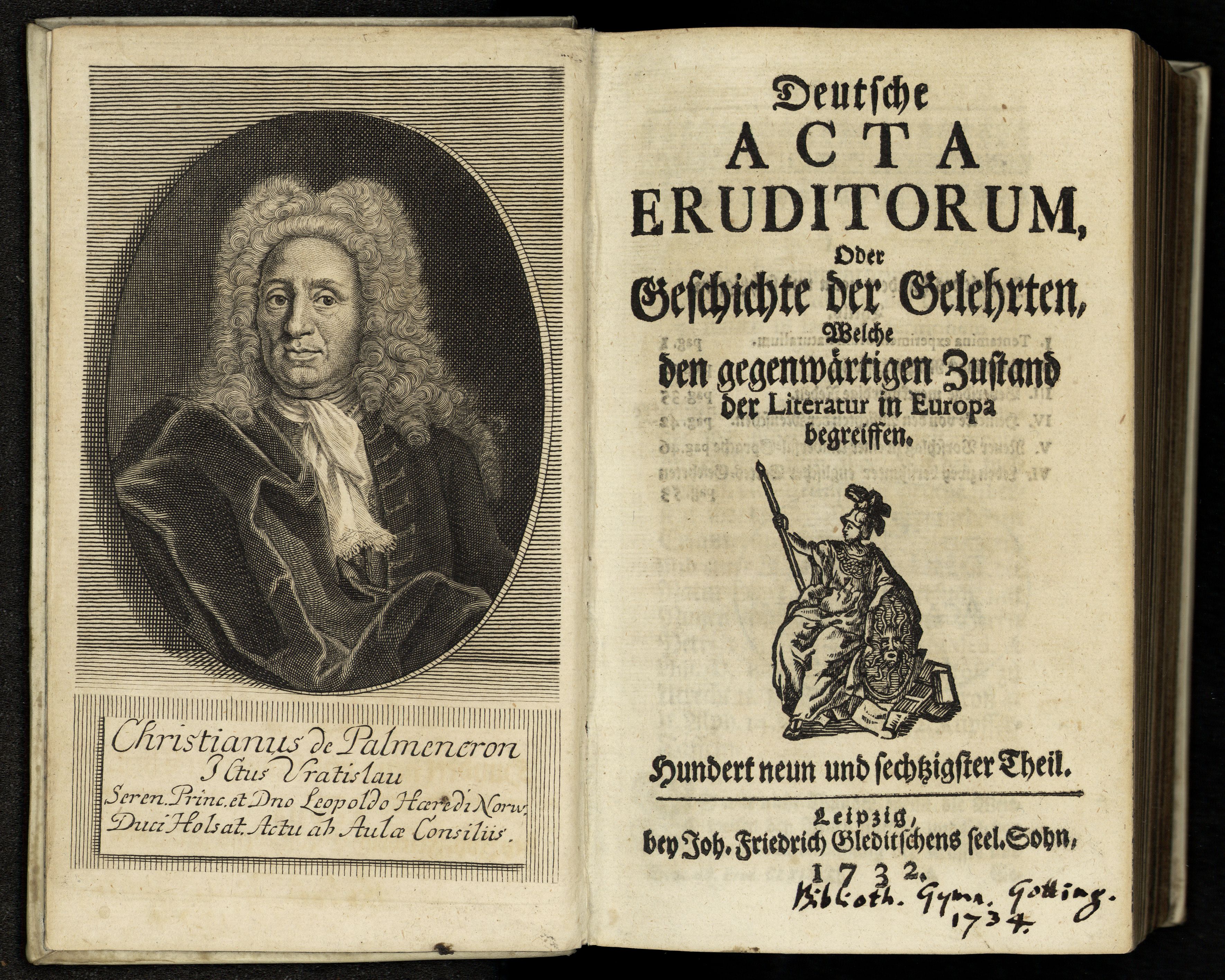 Porträt von Pfeiffer, Christian  (Deutsche Acta Eruditorum., 1732, 169. T., ungez. Bl. am Anf. d. Bandes. [Doppelseite])