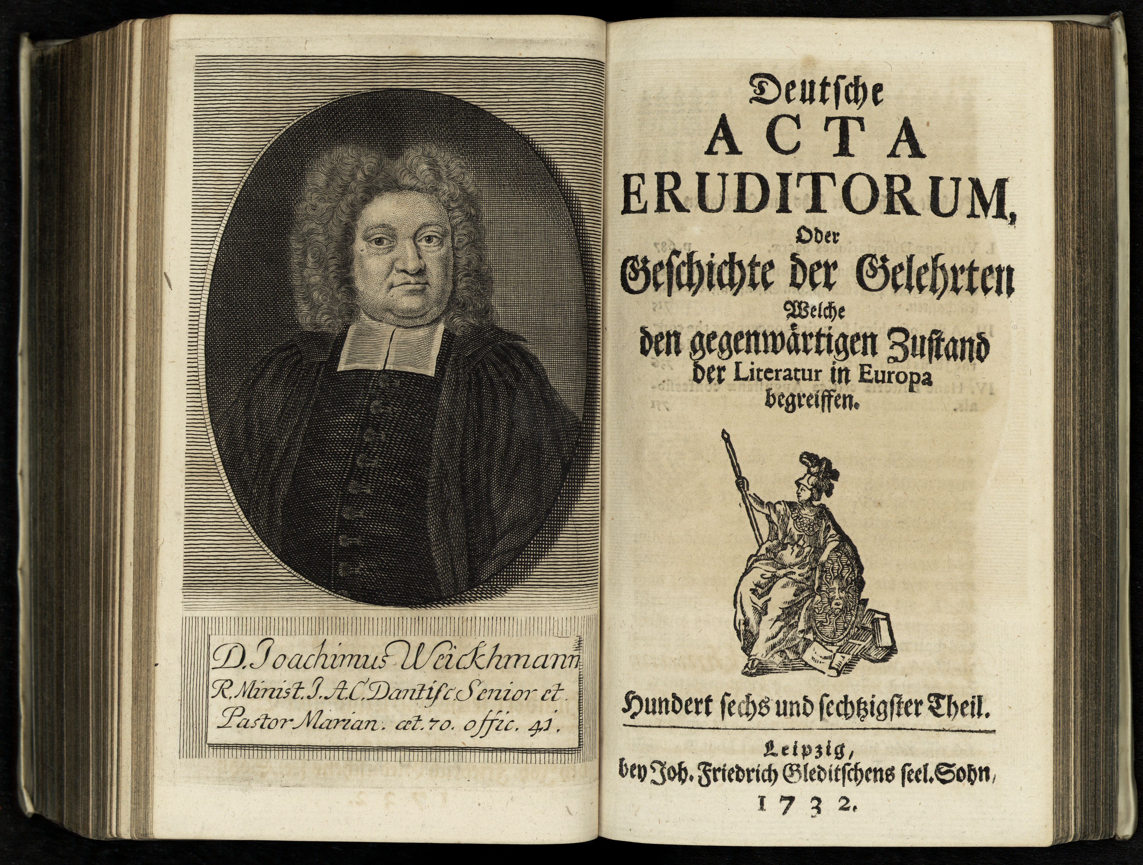 Porträt von Weickhmann, Joachim  (Deutsche Acta Eruditorum., 1732, 166. T., ungez. Bl. vor S. 685. [Doppelseite])