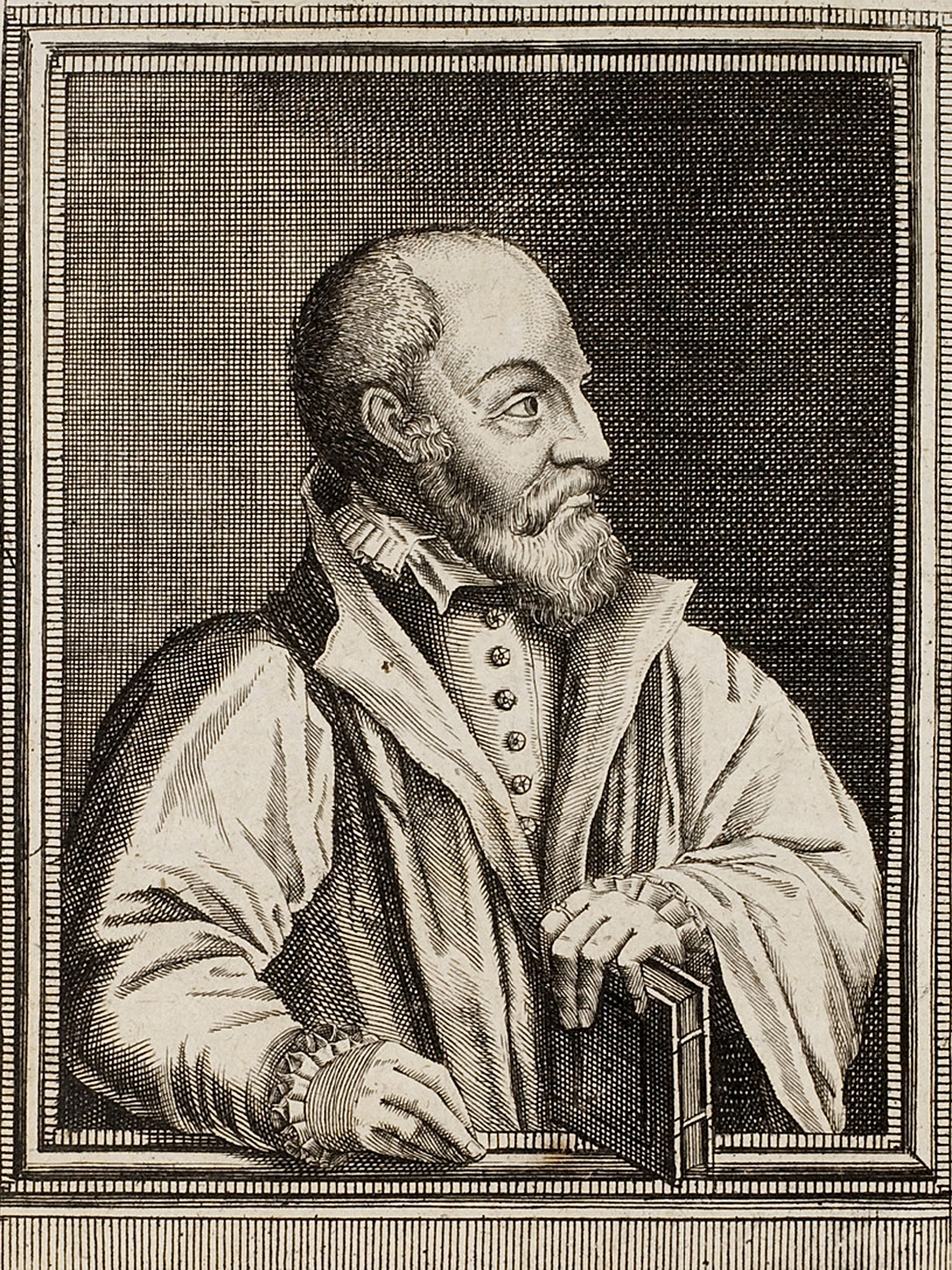 Porträt von Ramus, Petrus  (Neue Bibliothec oder Nachricht und Urtheile von neuen Büchern., 1714, 32. St., ungez. Bl. vor S. 81. [Zuschnitt auf Schmuckrahmen])