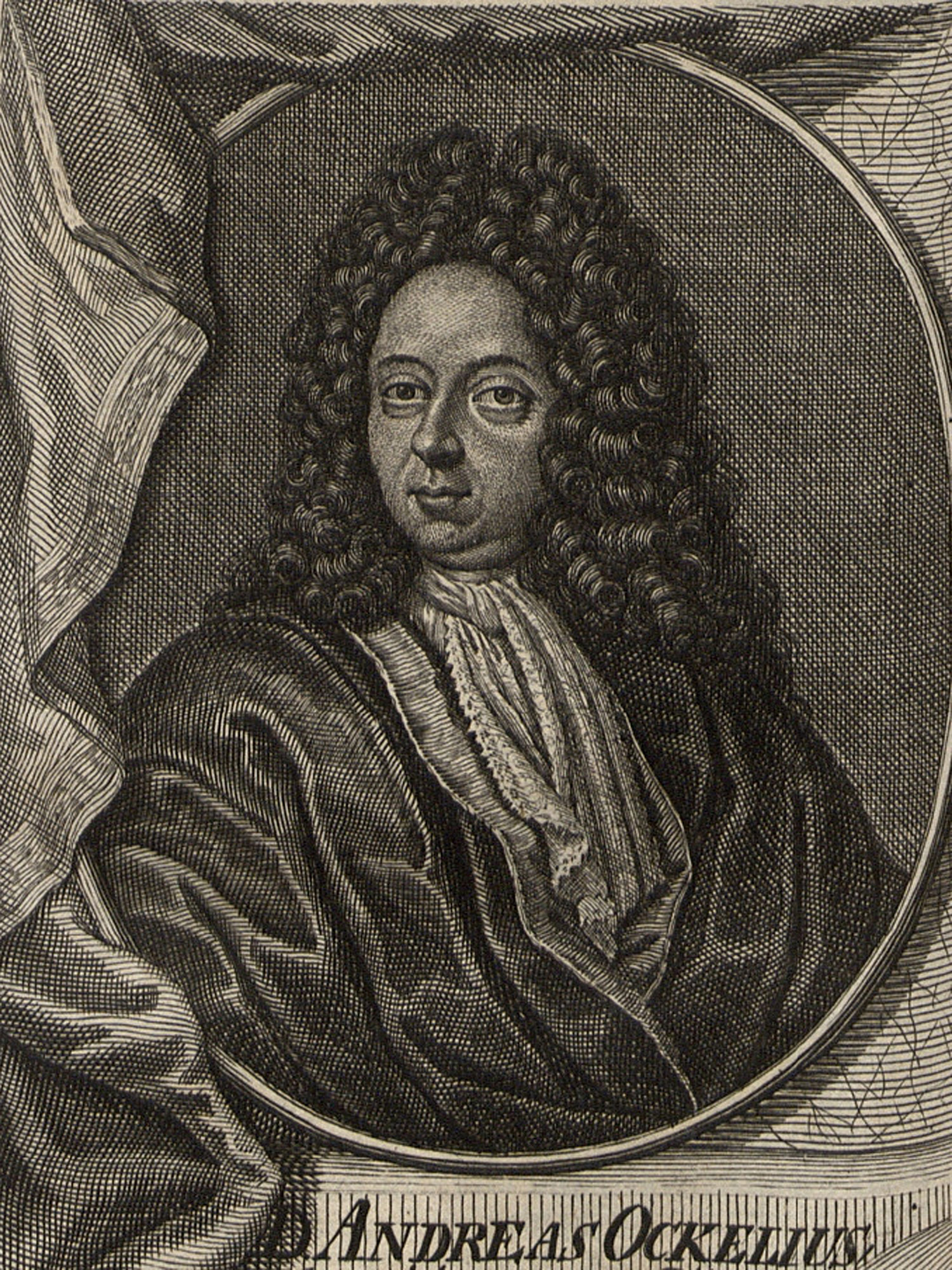 Porträt von Ockel, Andreas  (Neue Bibliothec oder Nachricht und Urtheile von neuen Büchern., 1716, 50. St., ungez. Bl. vor S. 819. [Zuschnitt auf Schmuckrahmen])