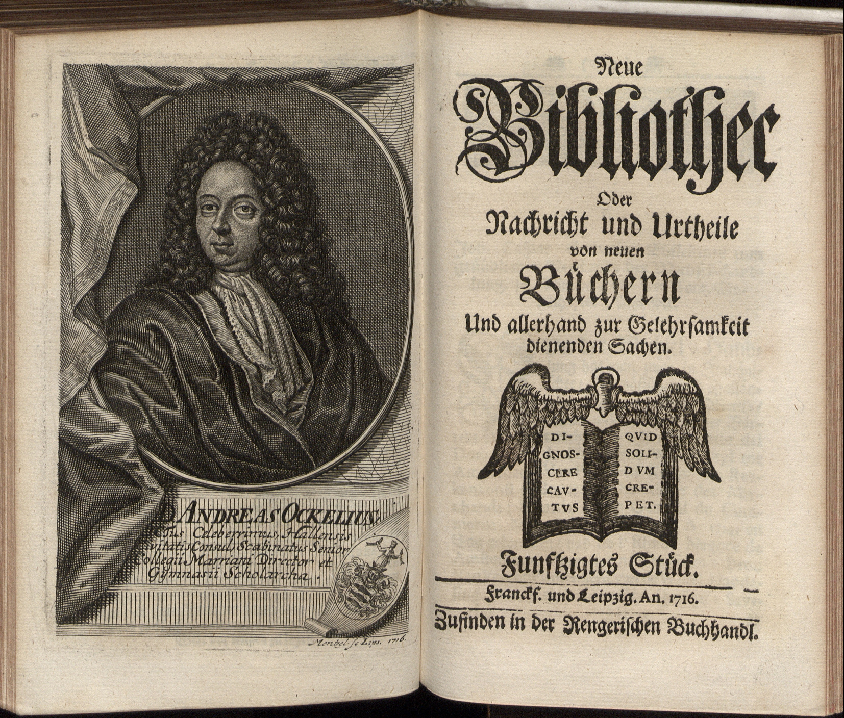 Porträt von Ockel, Andreas  (Neue Bibliothec oder Nachricht und Urtheile von neuen Büchern., 1716, 50. St., ungez. Bl. vor S. 819. [Doppelseite])
