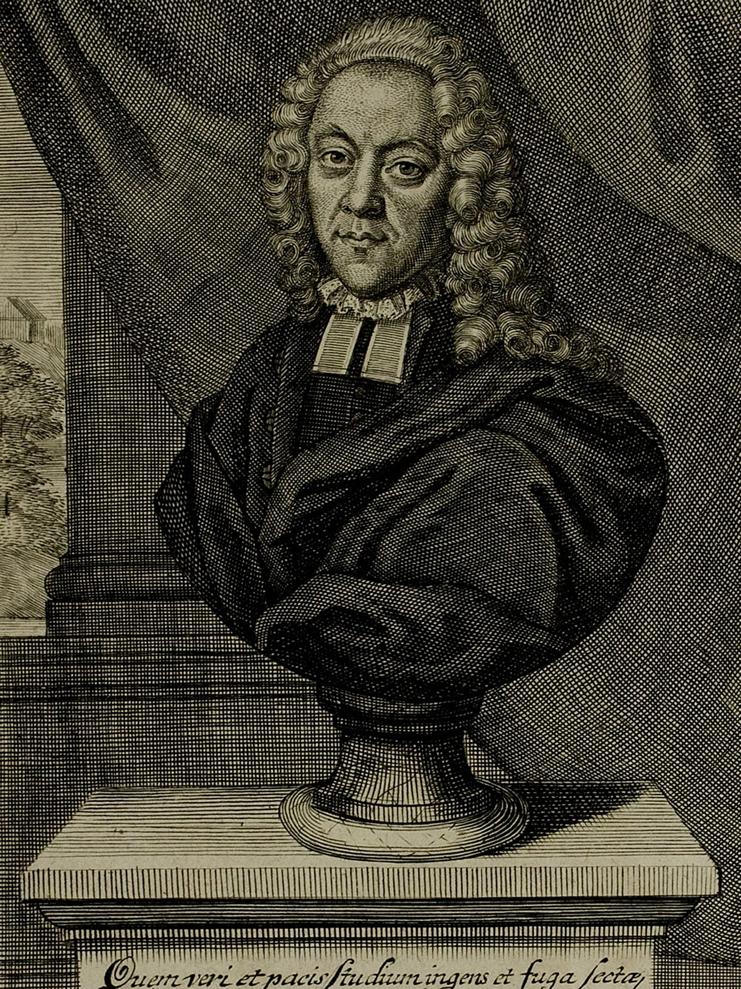 Porträt von Pfaff, Christoph Matthaeus  (Neue Bibliothec oder Nachricht und Urtheile von neuen Büchern., 1719, 81. St., ungez. Bl. vor S. 1. [Zuschnitt auf Schmuckrahmen])