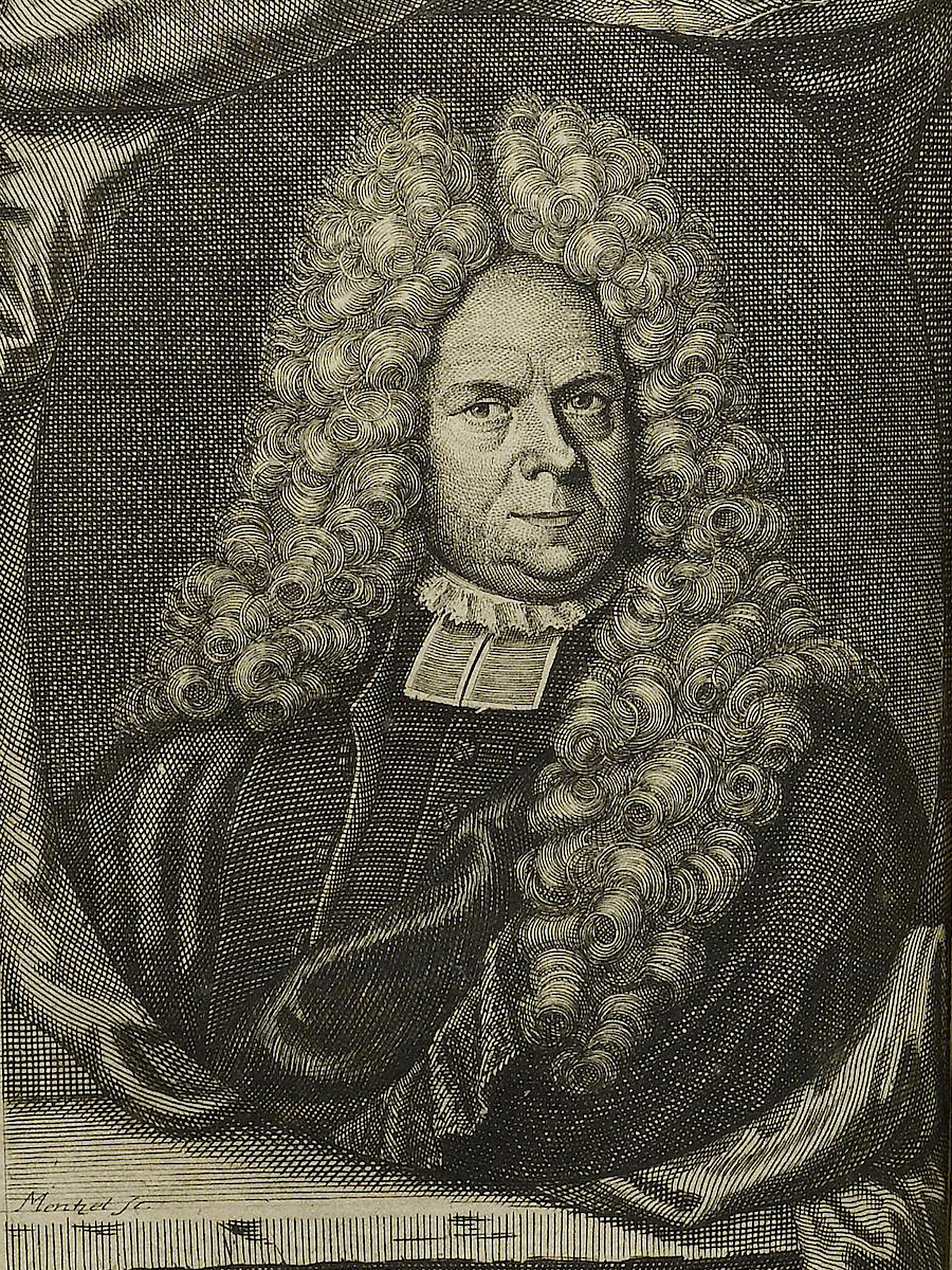 Porträt von Schweder, Gabriel  (Die Gelehrte Fama, welche den gegenwärtigen Zustand der gelehrten Welt und sonderlich derer deutschen Universitäten entdecket., 1717, 58. T., ungez. Bl. am Anf. d. Stückes. [Zuschnitt auf Schmuckrahmen])