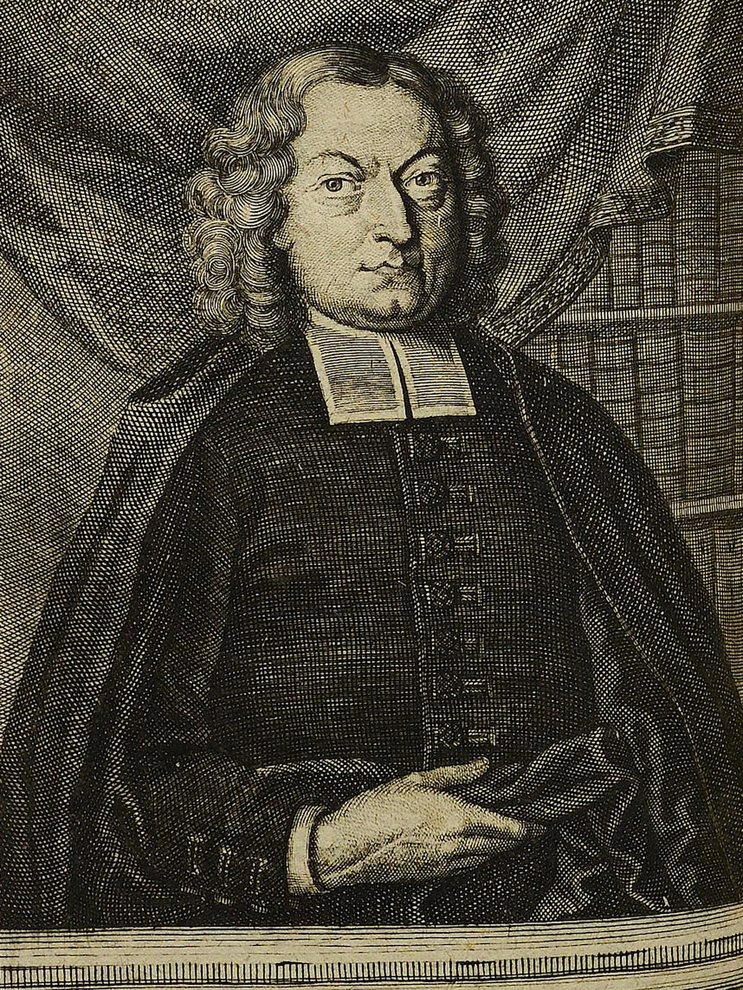 Porträt von Hochstetter, Andreas Adam  (Die Gelehrte Fama, welche den gegenwärtigen Zustand der gelehrten Welt und sonderlich derer deutschen Universitäten entdecket., 1715, 44. T., ungez. Bl. am Anf. d. Stückes. [Zuschnitt auf Schmuckrahmen])