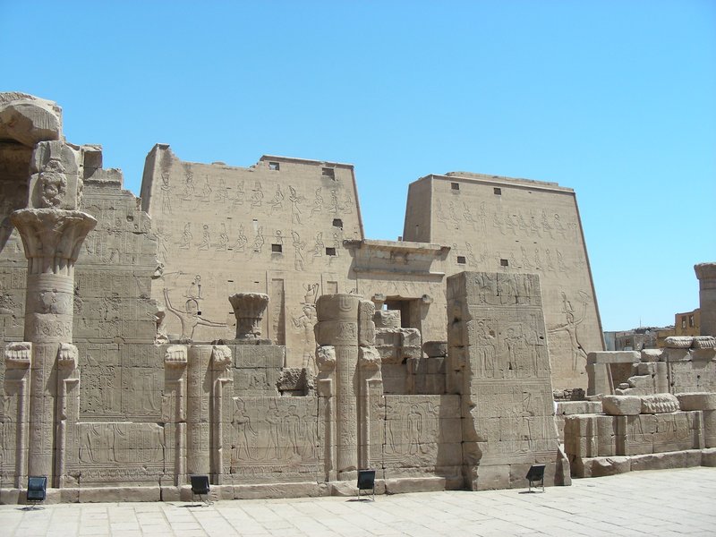 The city of Edfu is situated in Upper Egypt, about 100 km south of Luxor on the west bank of the Nile. It is famous for its large temple from the Ptolemaic age (about 300-30 BC) that is dedicated to the falcon-headed god Horus. It is one of the most impressive sacred buildings in Egypt and is considered to be the best preserved temple of antiquity.