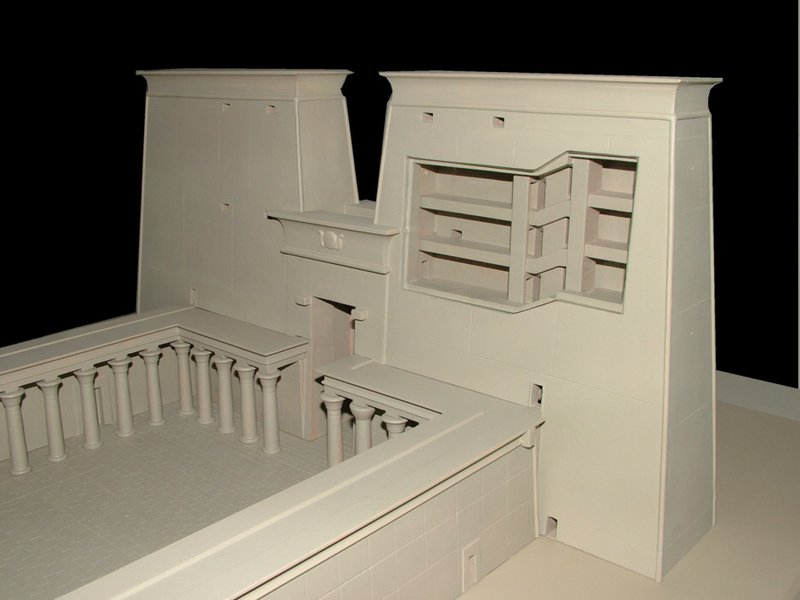 Zwischen Oktober 2005 und Februar 2006 wurde von Herrn Dr. Uwe Bartels ein Modell des Tempels von Edfu im Maßstab 1:150 angefertigt. Das Modell besteht aus fünf Modulen (Pylon, Umfassungsmauer, Naos, Pronaos, Bodenplatte), welche je nach Bedarf entfernt werden können um einen optimalen Einblick in sämtliche Bereiche des Tempels zu gewährleisten. Zusätzlich wurden sowohl die Dächer von Naos und Pronaos, als auch die Nordwand des westlichen Pylonturmes mit Plexiglasscheiben versehen, um freien Blick in Treppenhäuser und Tempelräume zu gestatten.