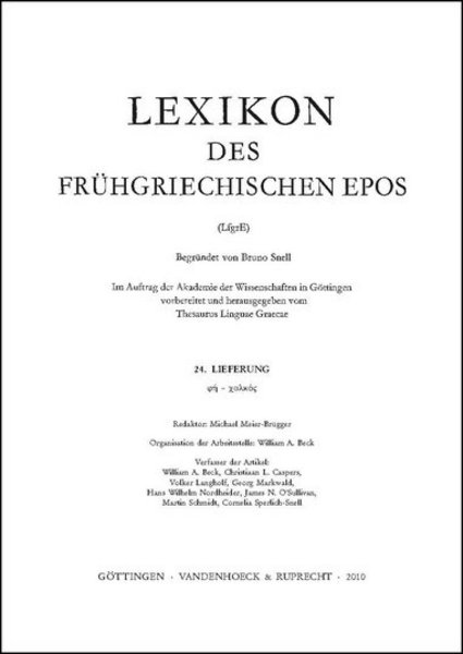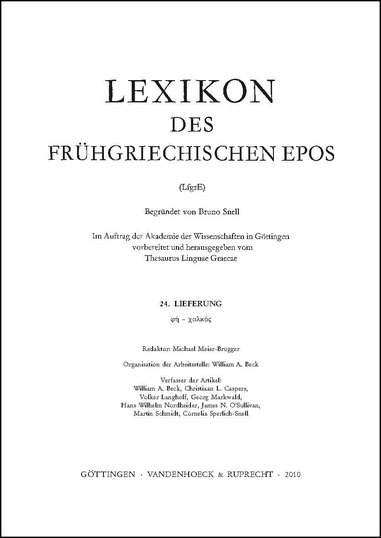 - Neue Abhandlungen der Akademie der Wissenschaften zu Göttingen, Philologisch-Historische Klasse, Neue Folge 21: Homer, gedeutet durch ein großes Lexikon - Akten des Hamburger Kolloquiums vom 6. - 8. Oktober 2010 zum Abschluss des Lexikons des Frühgriechischen Epos.