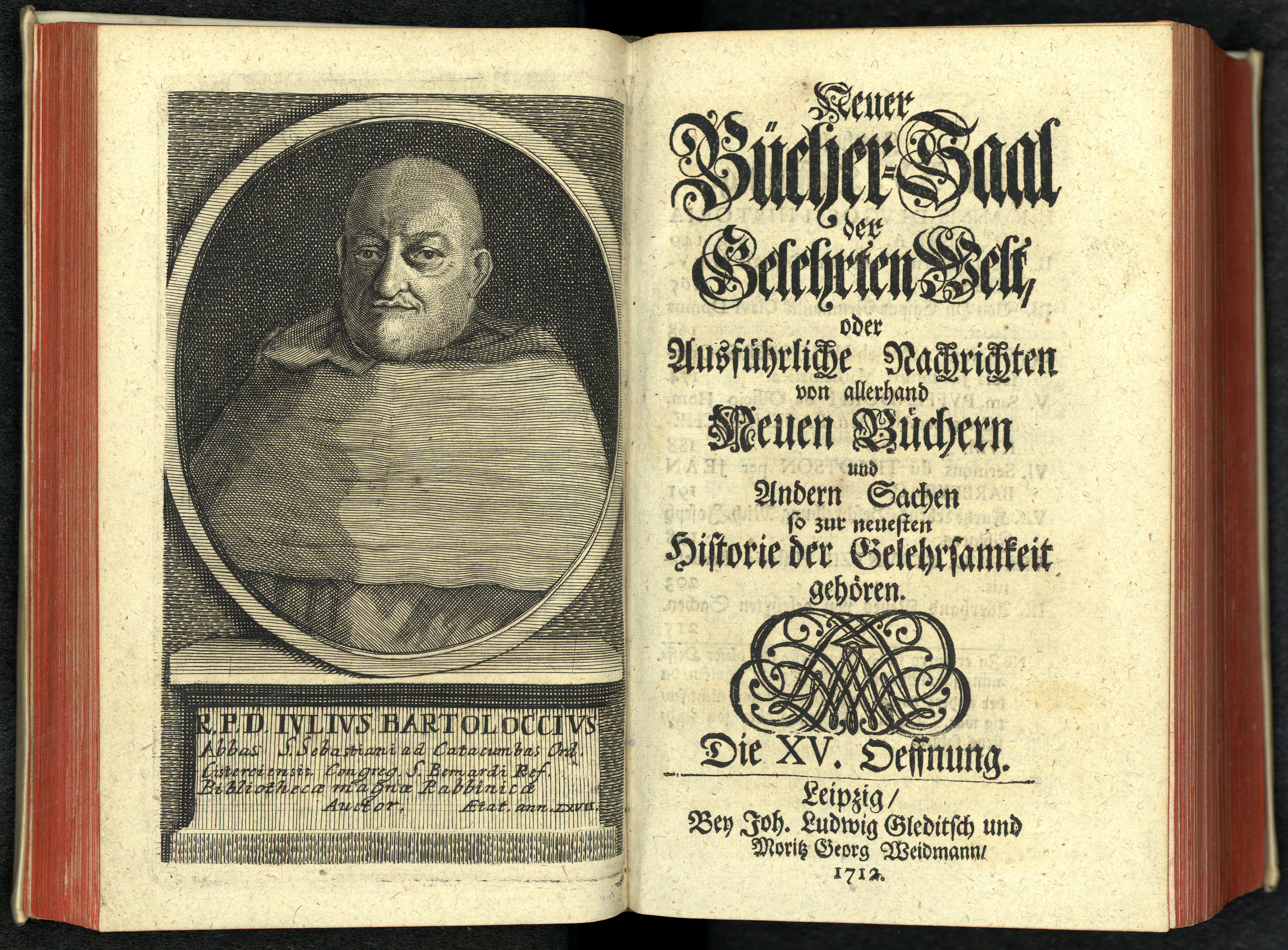 Porträt von Bartolocci, Giulio  (Neuer Bücher-Saal der gelehrten Welt., 1712, 15. Oeffn., ungez. Bl. vor S. 149. [Doppelseite])