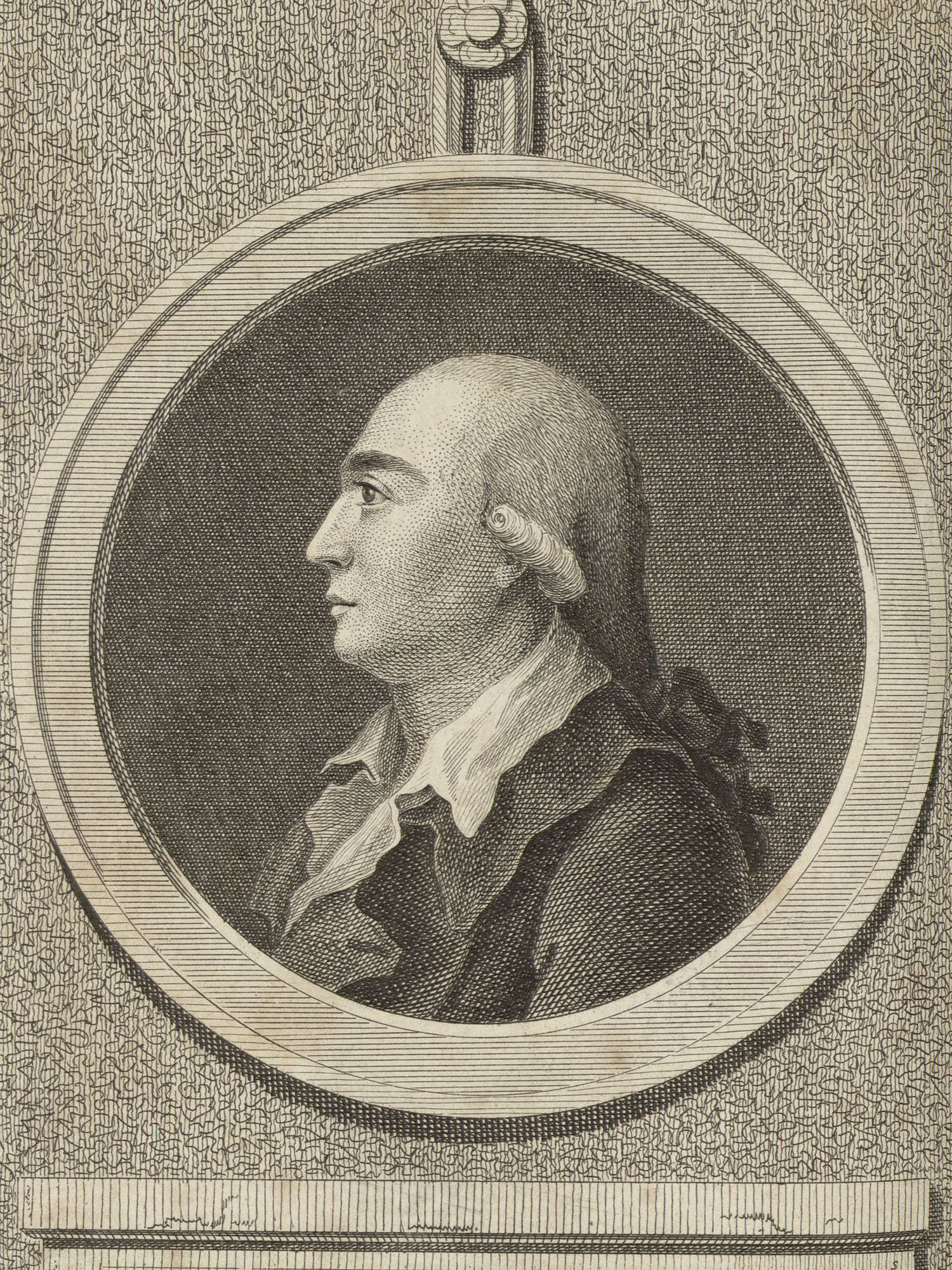 Porträt von Beil, Johann David  (Litteratur- u. Theater-Zeitung., 1784, 3. T., ungez. Bl. am Anf. d. 3. Teils. [Zuschnitt auf Schmuckrahmen])