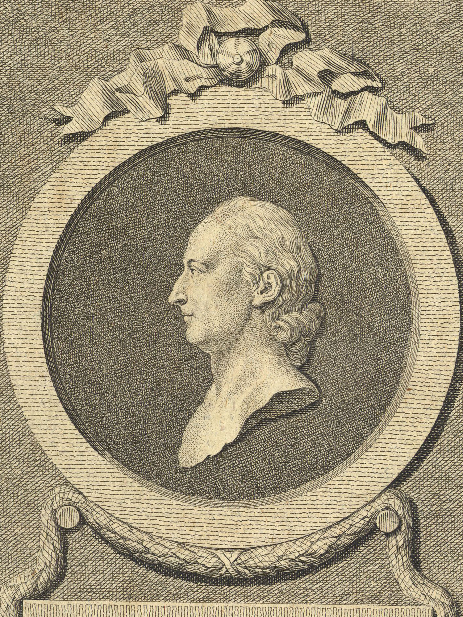 Porträt von Campe, Joachim Heinrich  (Allgemeine deutsche Bibliothek., 1781, 47. Bd., 1. St., ungez. Bl. am Anf. d. Bandes. [Zuschnitt auf Schmuckrahmen])