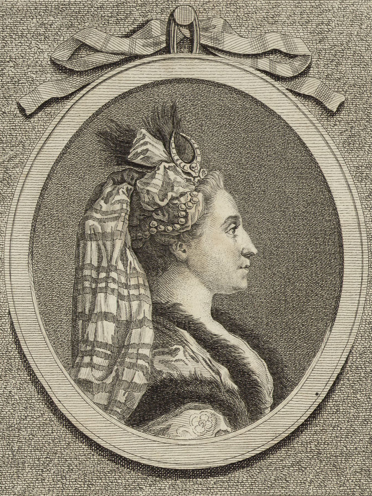 Porträt von Clairon, Claire Josèphe Hippolyte Leris de LaTude  (Litteratur- u. Theater-Zeitung., 1780, 1. T., ungez. Bl. am Anf. d. 1. Teils. [Zuschnitt auf Schmuckrahmen])