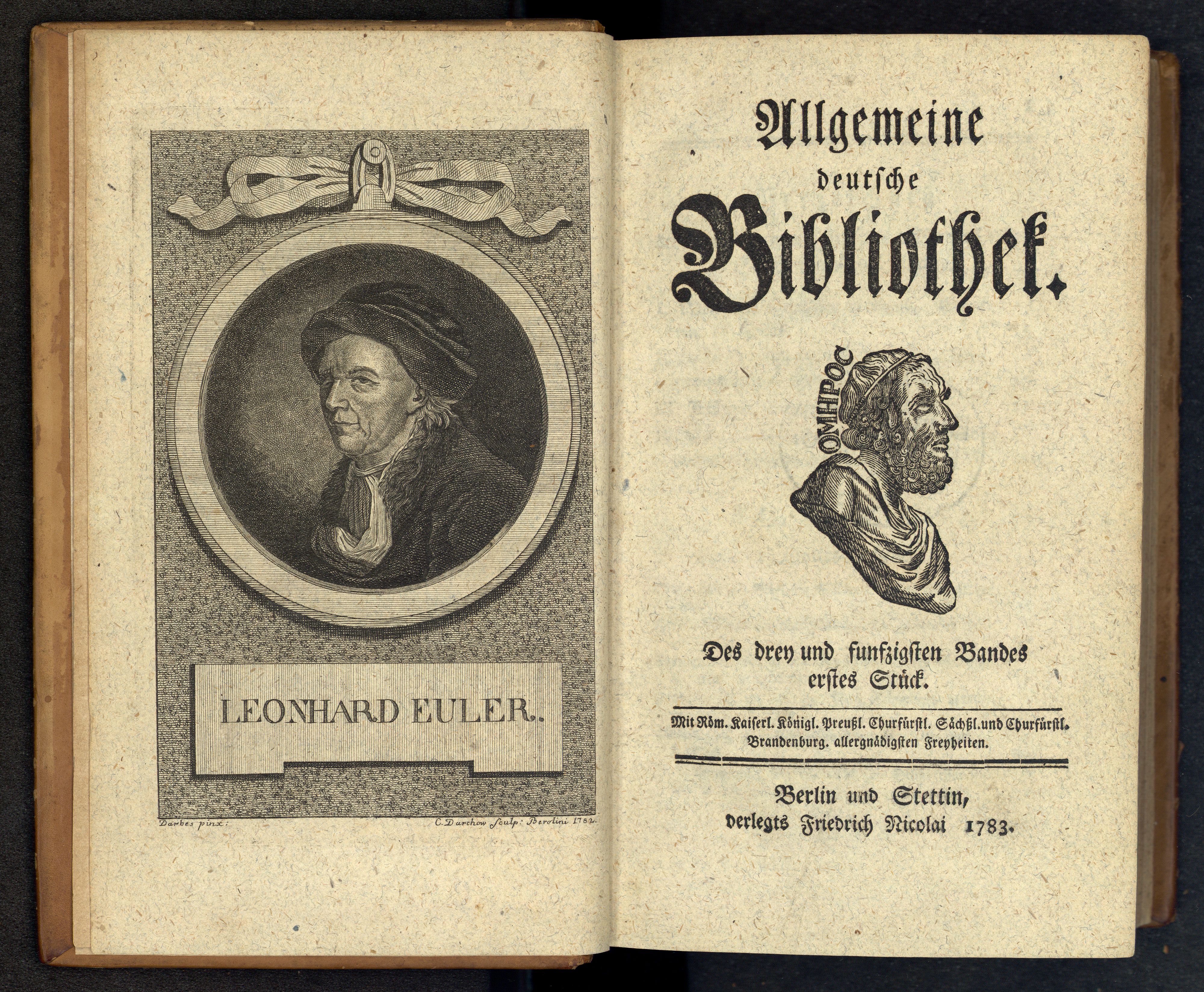 Porträt von Euler, Leonhard  (Allgemeine deutsche Bibliothek., 1783, 53. Bd., 1. St., ungez. Bl. am Anf. d. Bandes. [Doppelseite])