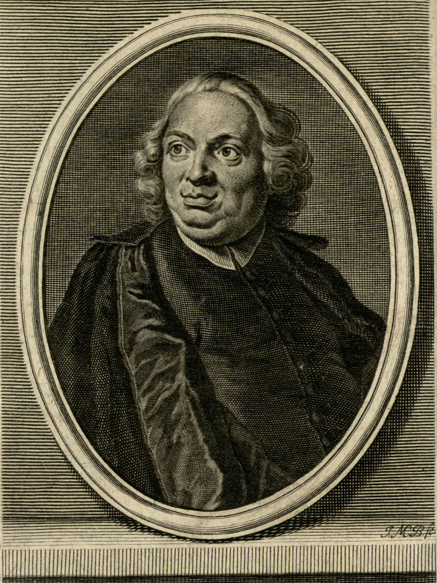 Porträt von Gori, Antonio Francesco  (Zuverläßige Nachrichten von dem gegenwärtigen Zustande der Wissenschaften., 1746, 73. T., ungez. Bl. am Anf. d. Bandes. [Zuschnitt auf Schmuckrahmen])