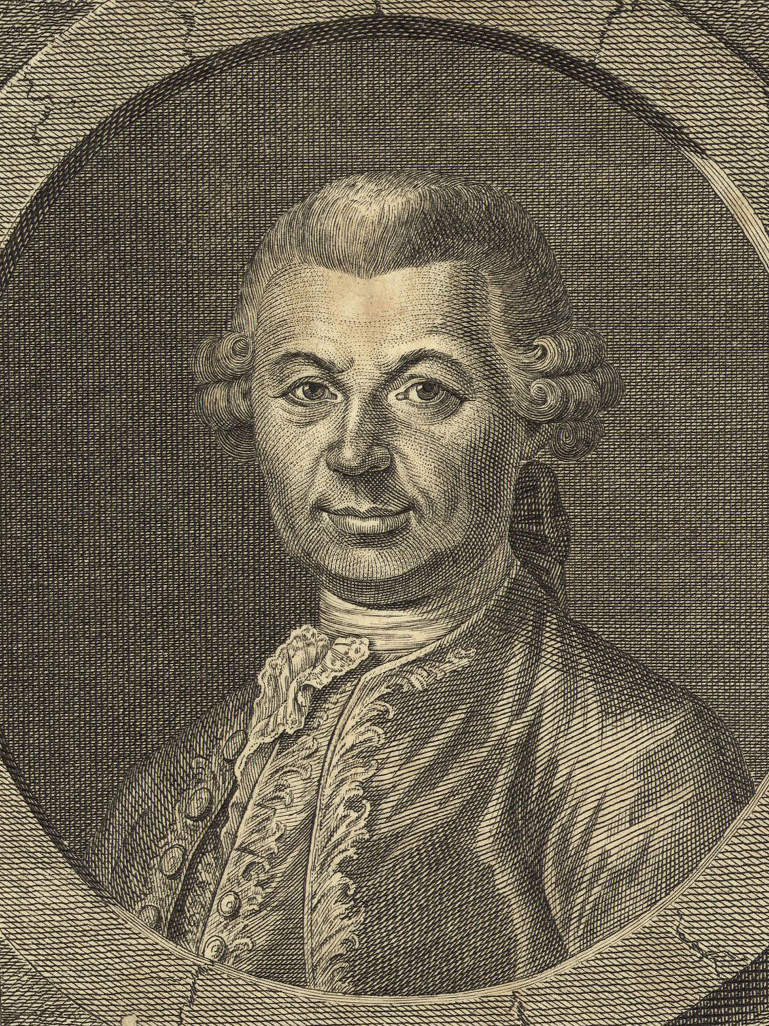 Porträt von Gozzi, Carlo  (Neue Bibliothek der schönen Wissenschaften., 1783, 28. Bd., 1. St., ungez. Bl. am Anf. d. Bandes. [Zuschnitt auf Schmuckrahmen])