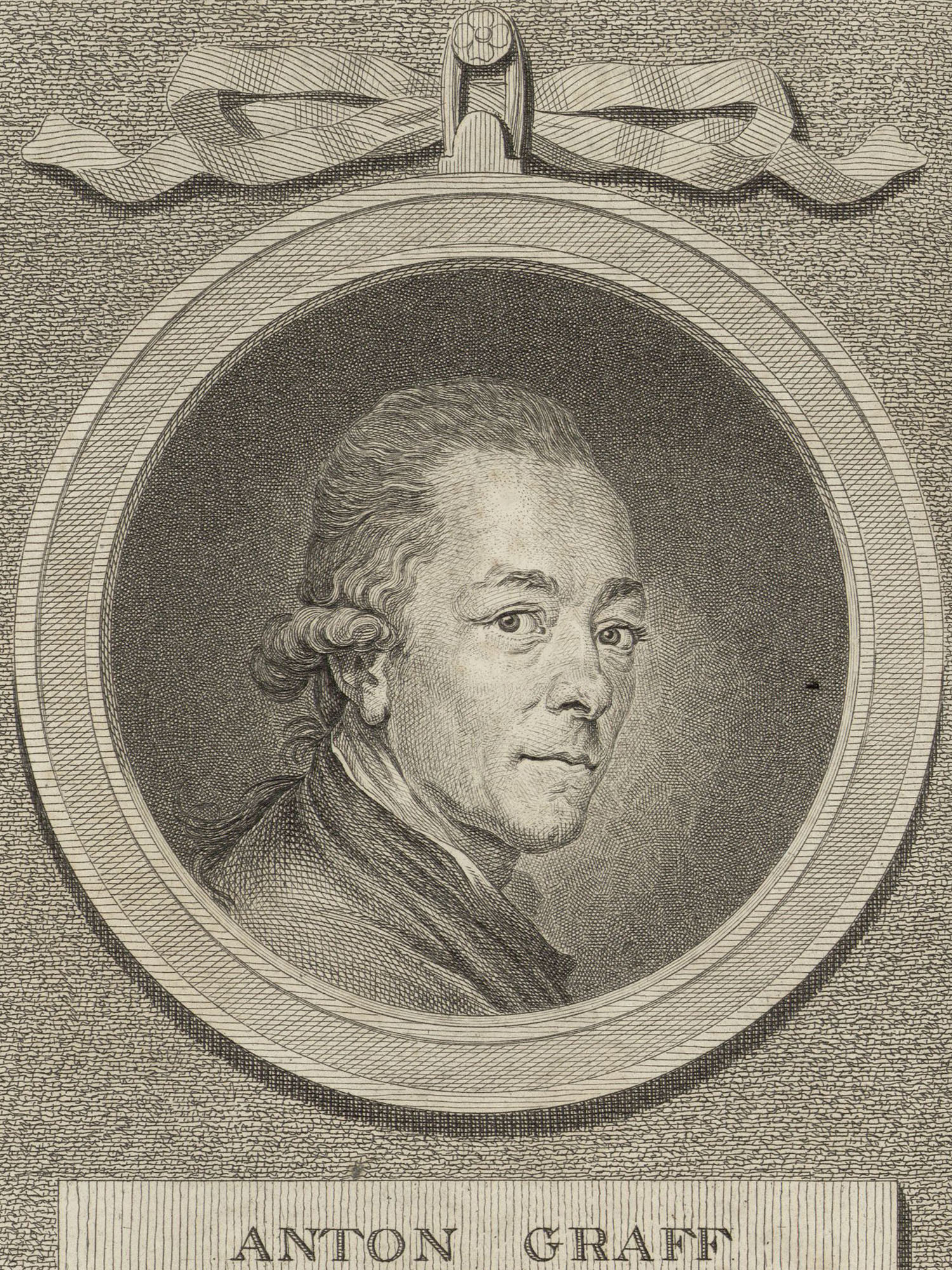 Porträt von Graff, Anton  (Litteratur- u. Theater-Zeitung., 1781, 4. T., ungez. Bl. am Anf. d. 4. Teils. [Zuschnitt auf Schmuckrahmen])