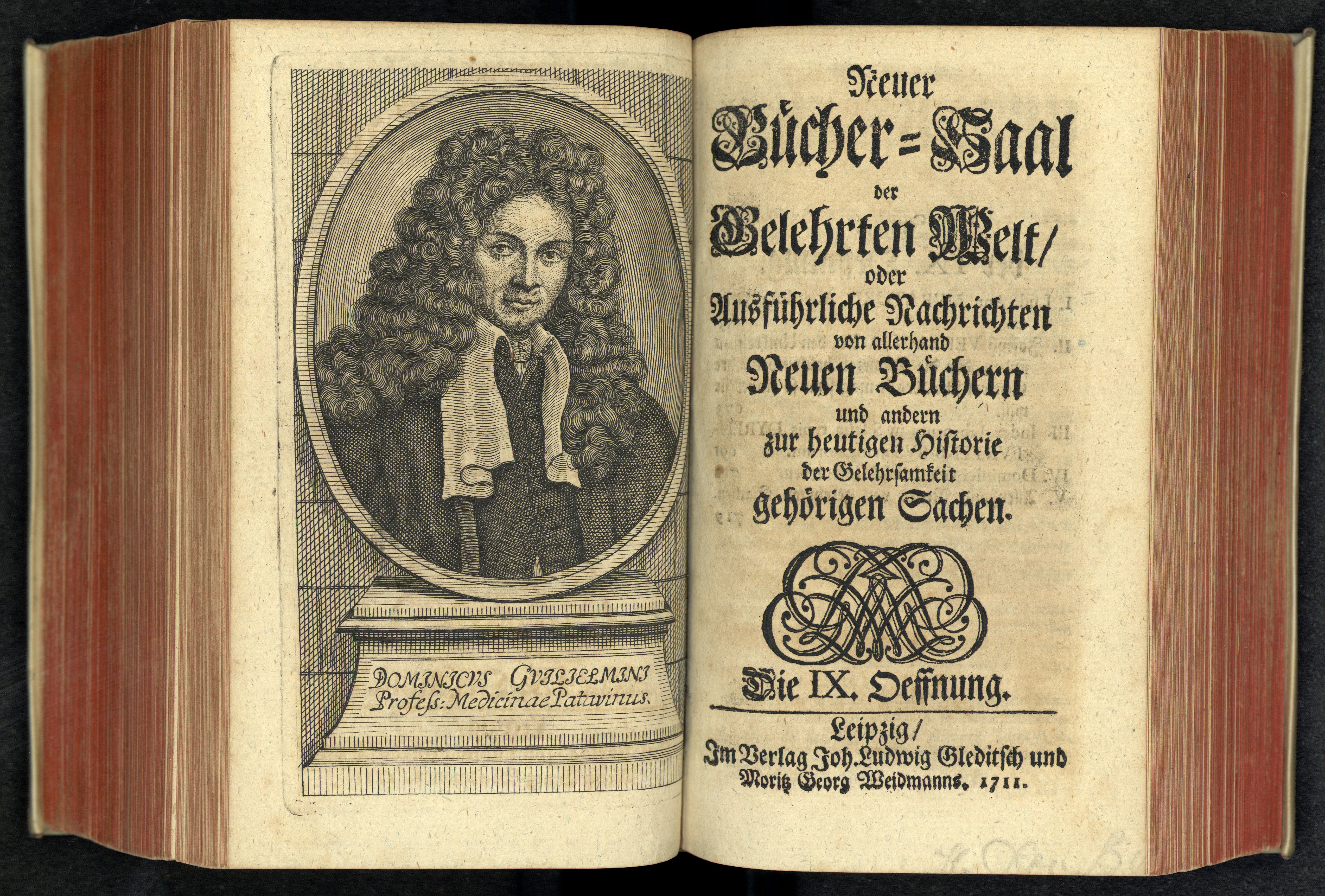 Porträt von Guglielmini, Domenico  (Neuer Bücher-Saal der gelehrten Welt., 1711, 9. Oeffn., ungez. Bl. vor S. 653. [Doppelseite])