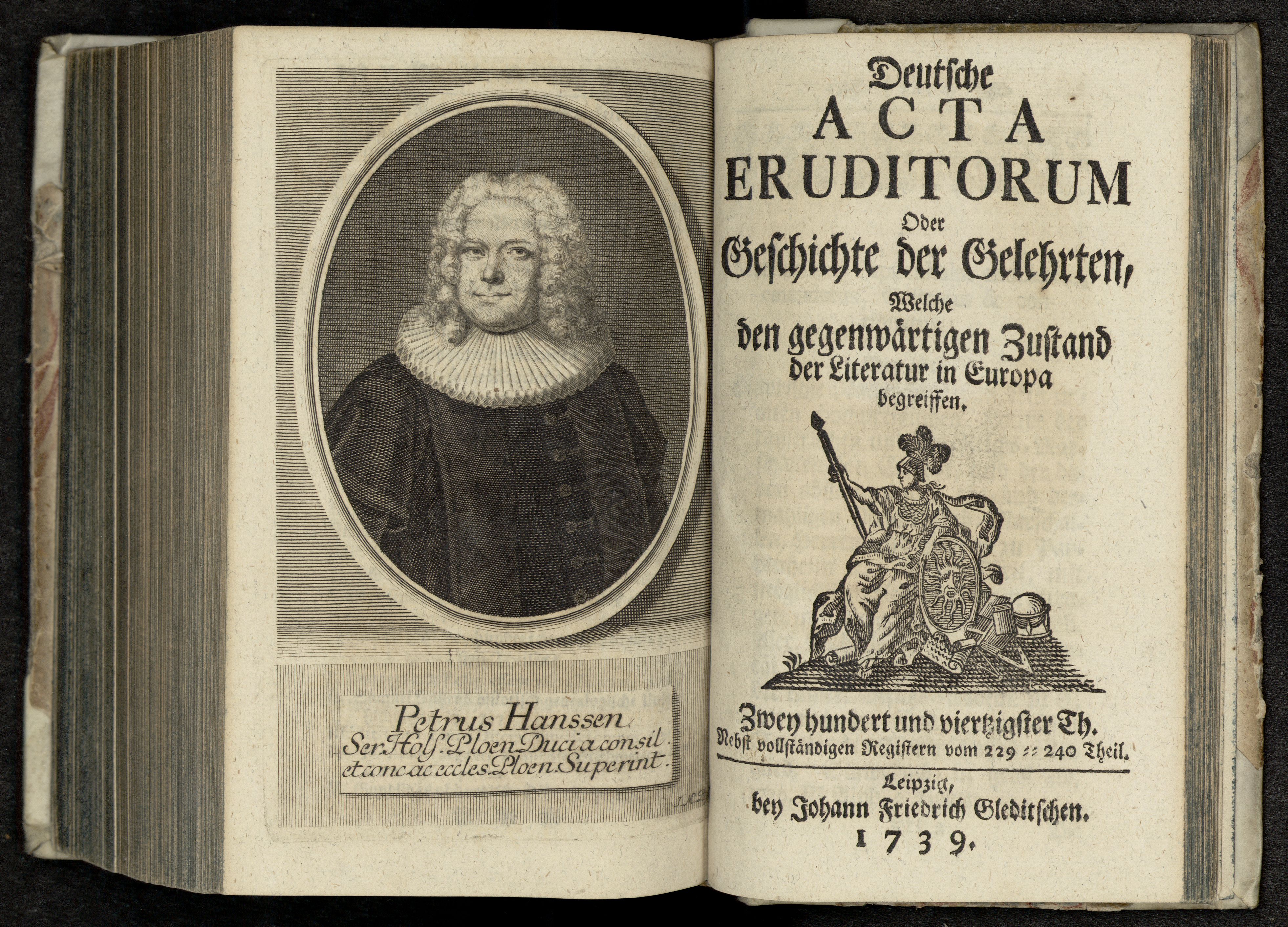 Porträt von Hansen, Peter  (Deutsche Acta Eruditorum., 1739, 240. T., ungez. Bl. vor S. 841. [Doppelseite])