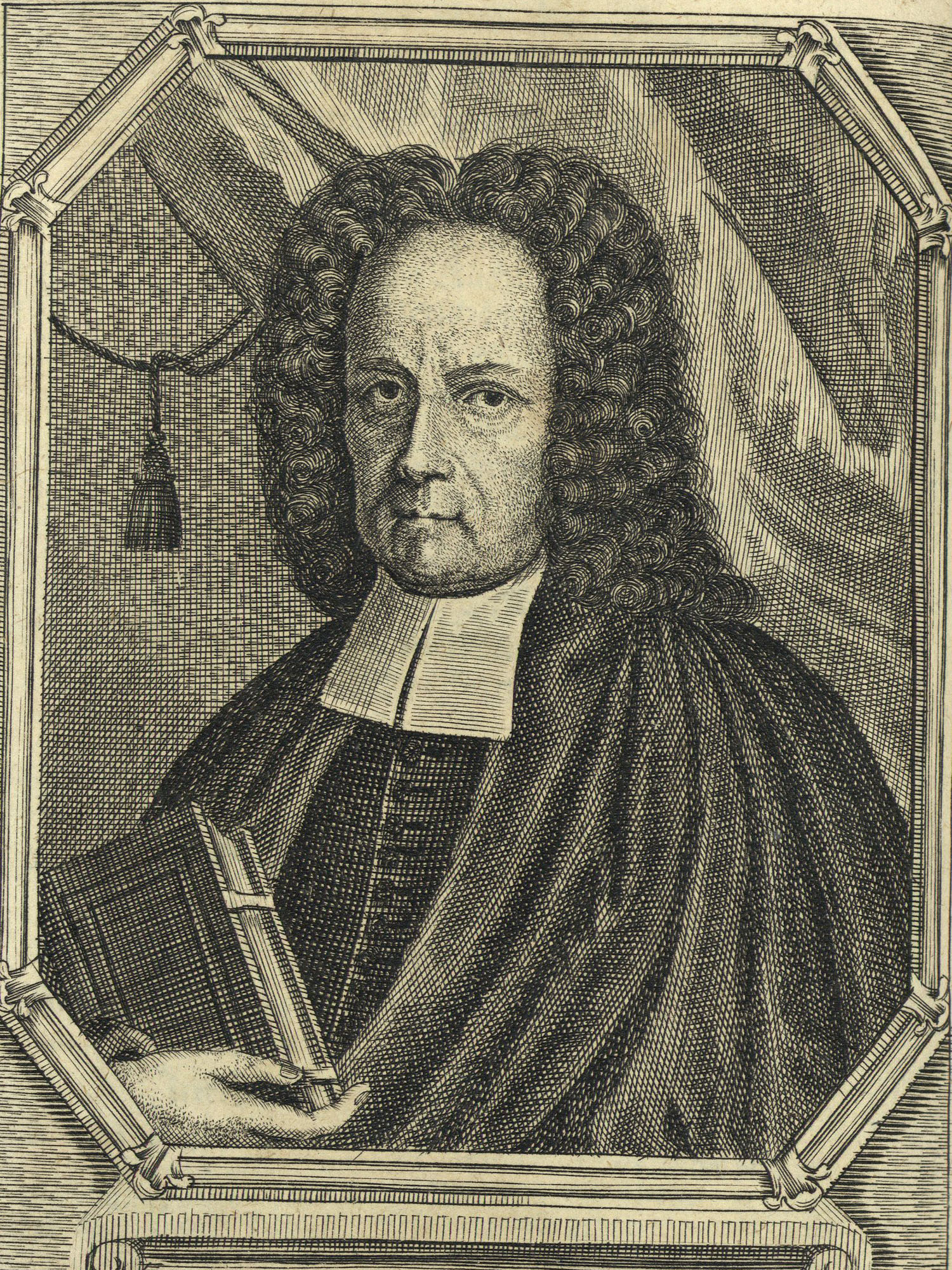 Porträt von Hocker, Johann Ludwig  (Fränckische Acta Erudita et Curiosa., 1731, 22. Slg., ungez. Bl. vor S. 813. [Zuschnitt auf Schmuckrahmen])
