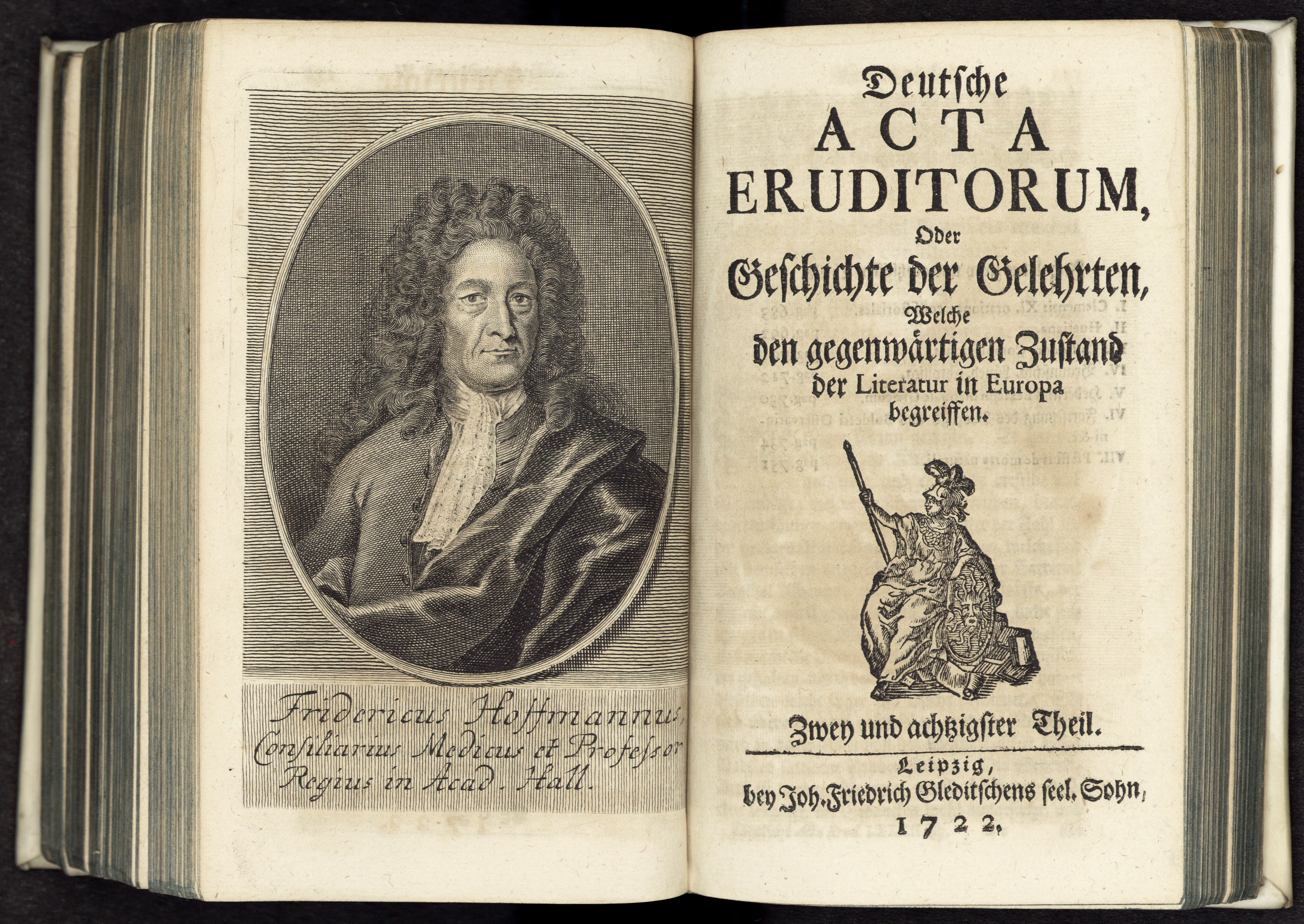 Porträt von Hoffmann, Friedrich  (Deutsche Acta Eruditorum., 1722, 82. T., ungez. Bl. vor S. 683. [Doppelseite])