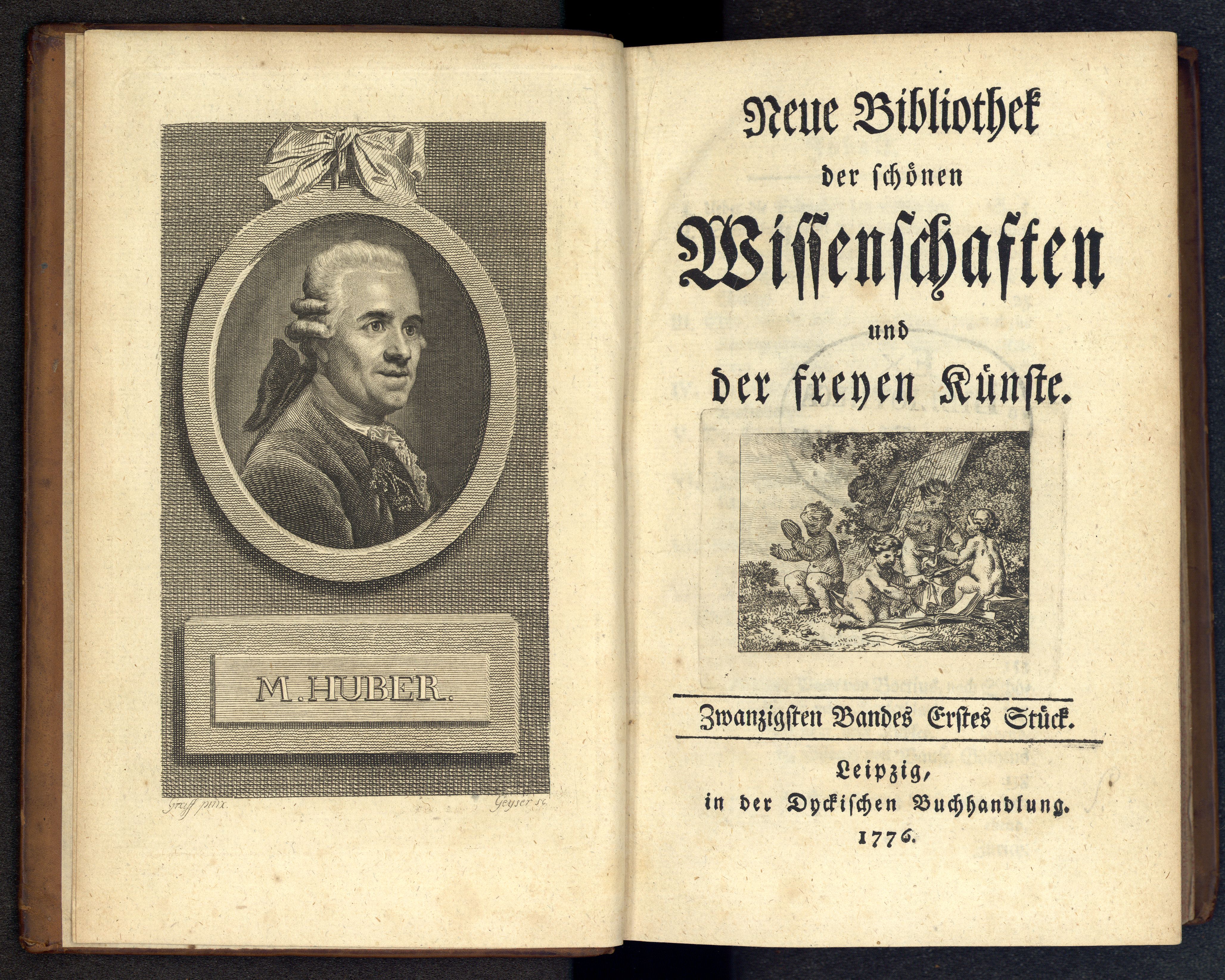 Porträt von Huber, Michael  (Neue Bibliothek der schönen Wissenschaften., 1776, 20. Bd., 1. St., ungez. Bl. am Anf. d. Bandes. [Doppelseite])