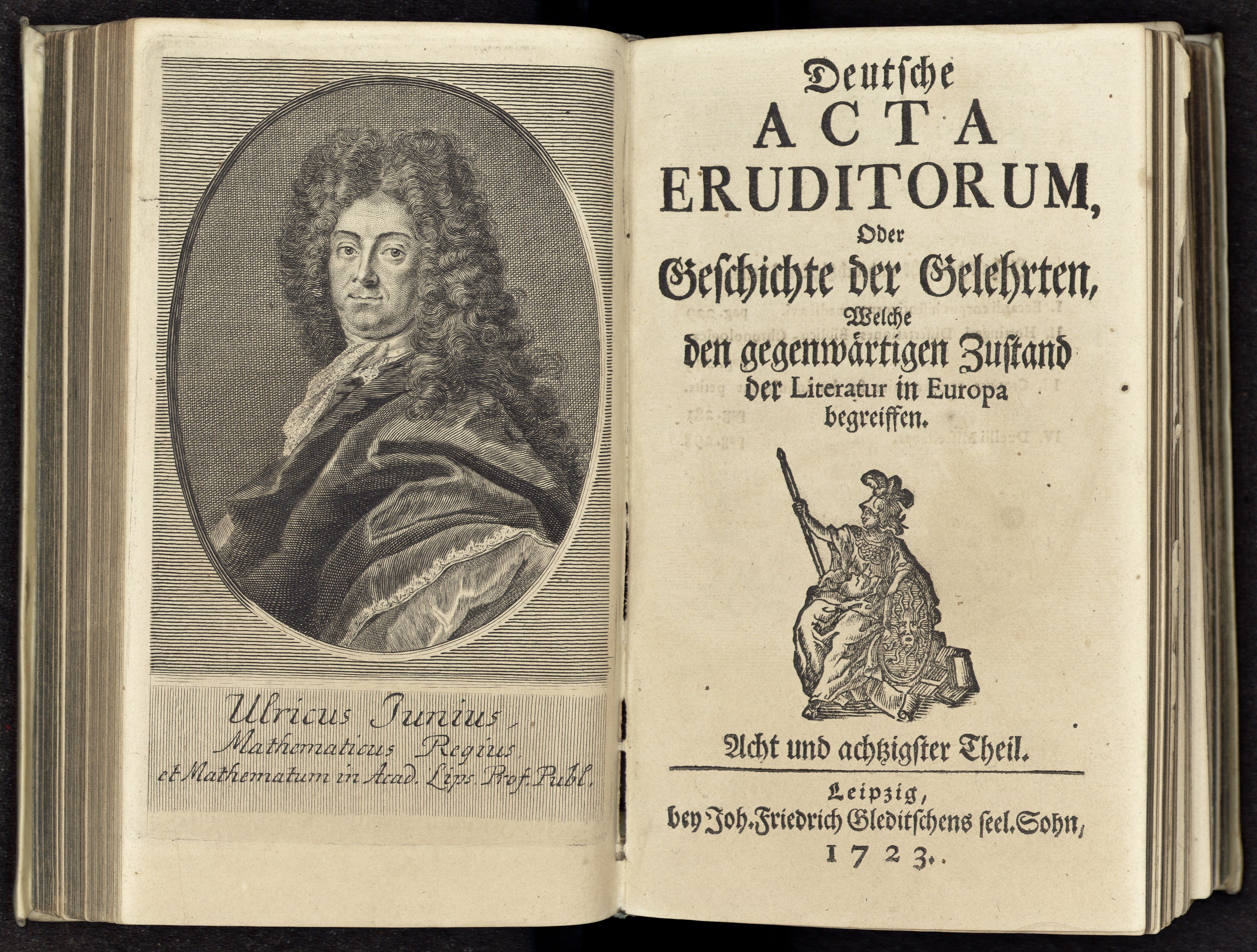 Porträt von Junius, Ulrich  (Deutsche Acta Eruditorum., 1723, 88. T., ungez. Bl. vor S. 229. [Doppelseite])