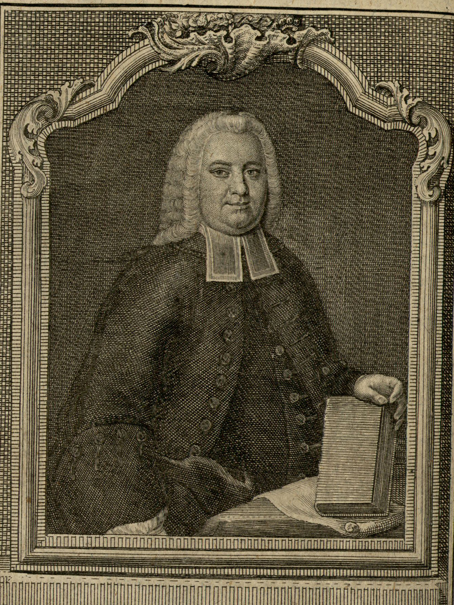 Porträt von Kraft, Friedrich Wilhelm  (Zuverläßige Nachrichten von dem gegenwärtigen Zustande der Wissenschaften., 1754, 173. T., ungez. Bl. vor S. 316. [Zuschnitt auf Schmuckrahmen])
