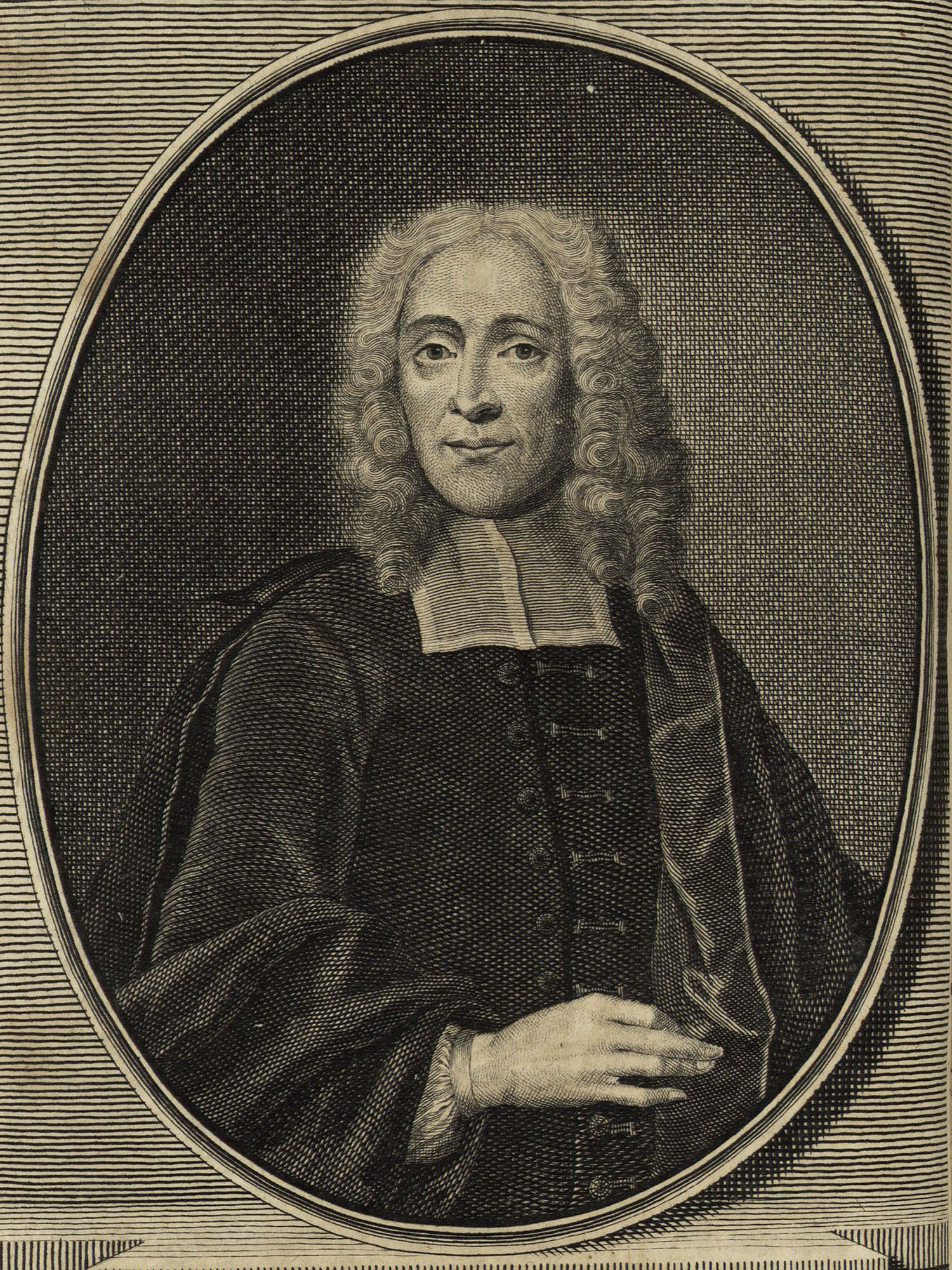 Porträt von Lampe, Friedrich Adolph  (Deutsche Acta Eruditorum., 1731, 161. T., ungez. Bl. vor S. 305. [Zuschnitt auf Schmuckrahmen])