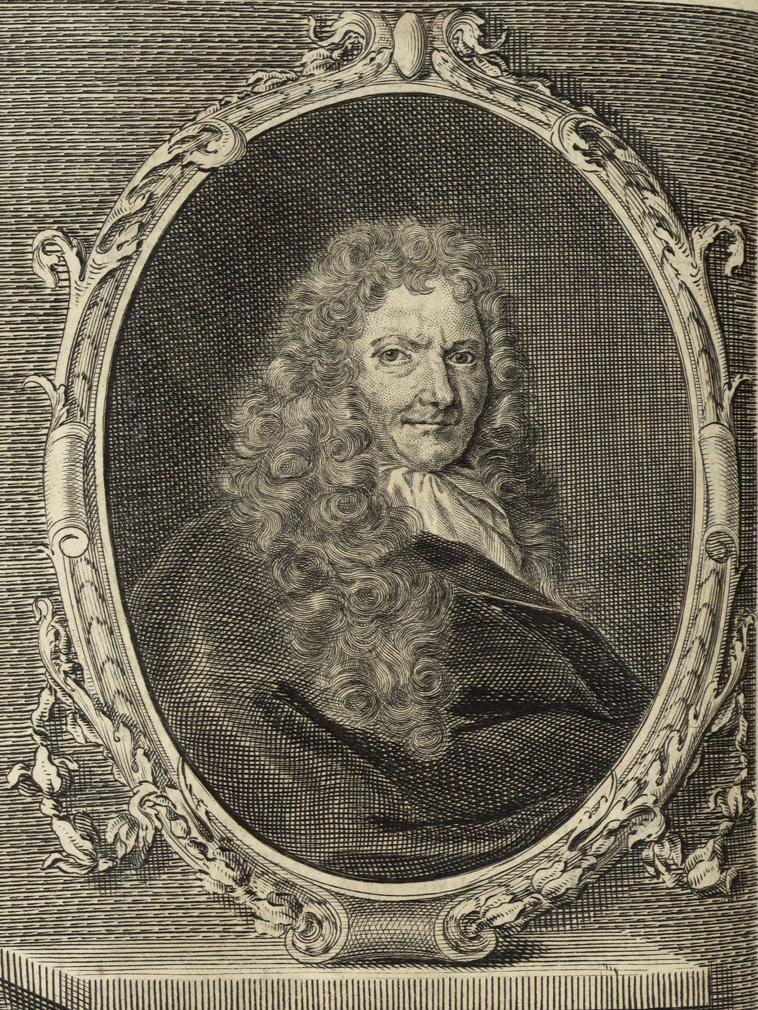 Porträt von Larrey, Isaac de  (Deutsche Acta Eruditorum., 1714, 23. T., ungez. Bl. vor S. 921. [Zuschnitt auf Schmuckrahmen])