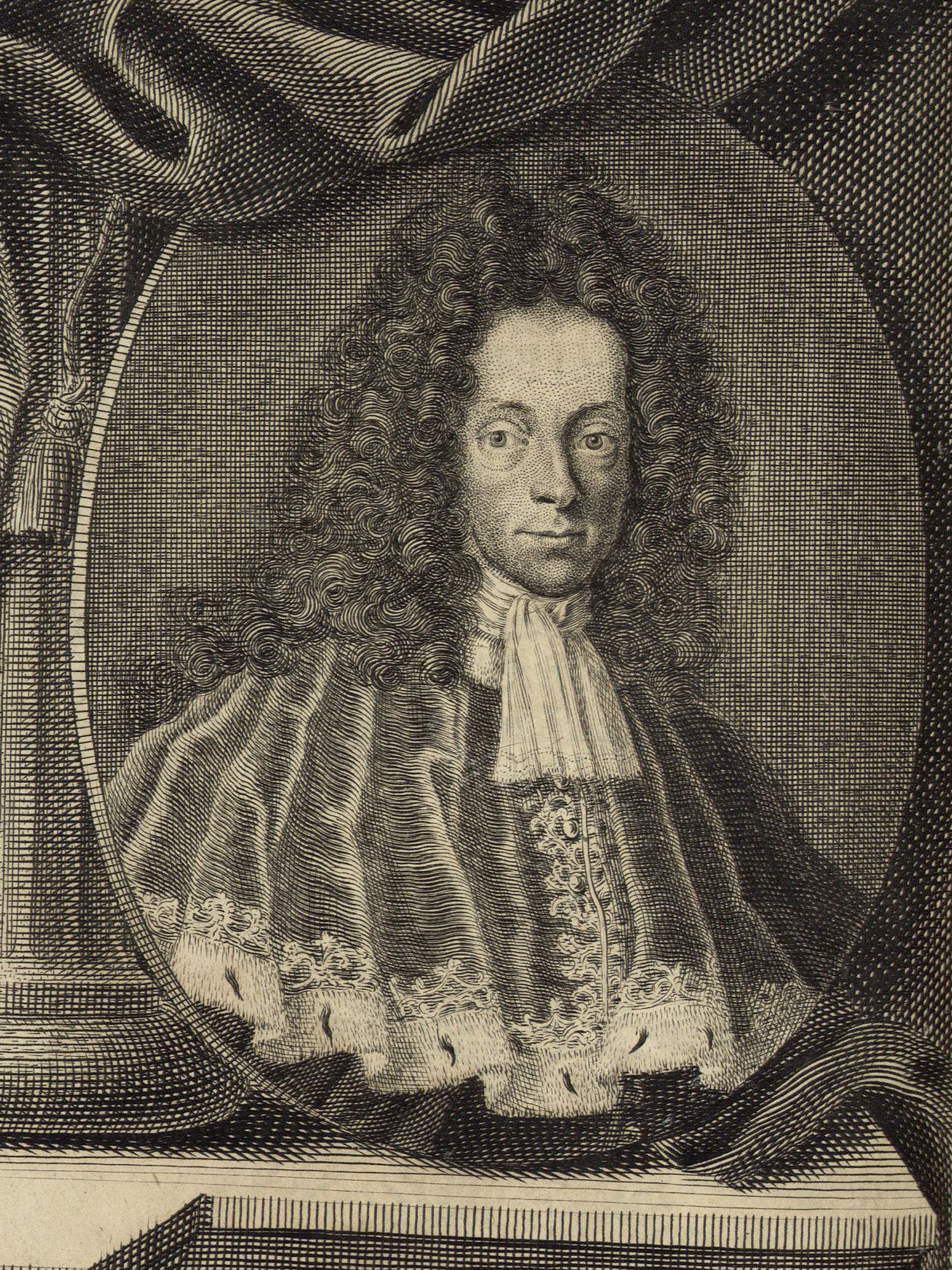 Porträt von Lehmann, Johann Christian  (Deutsche Acta Eruditorum., 1717, 46. T., ungez. Bl. vor S. 685. [Zuschnitt auf Schmuckrahmen])