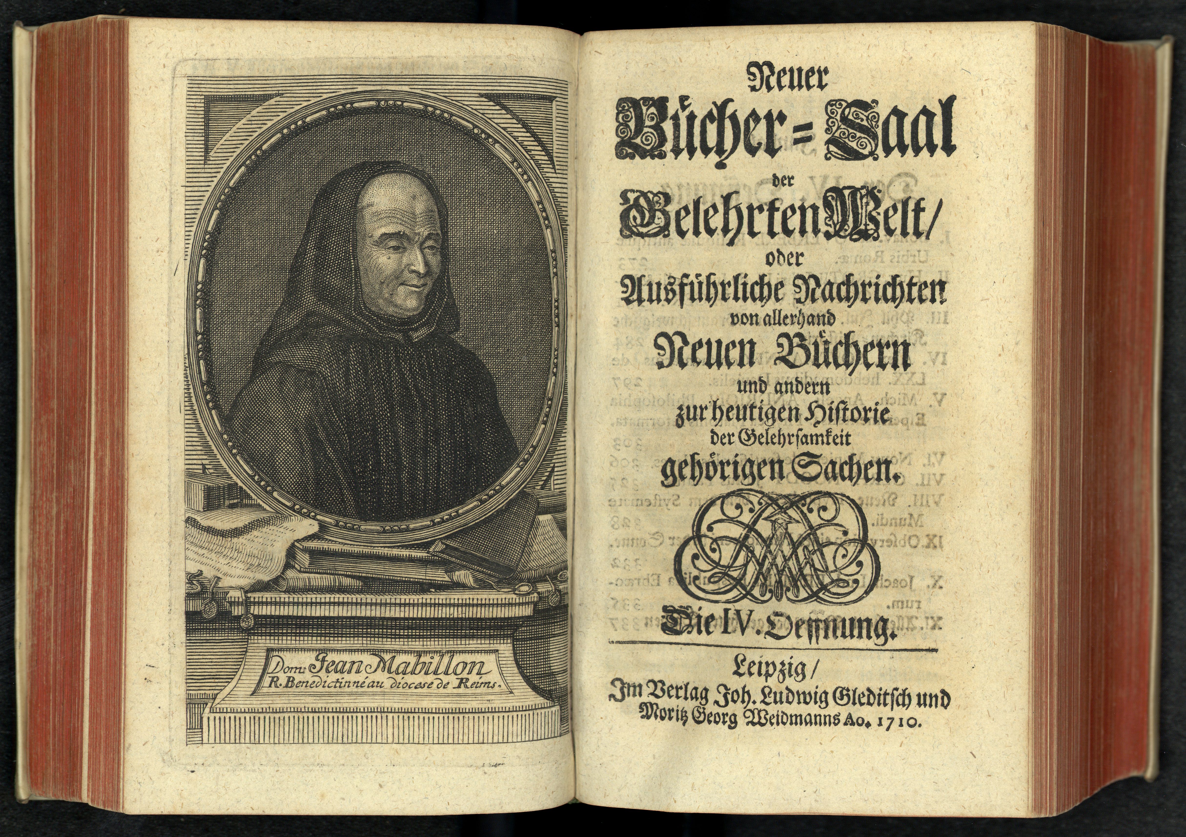 Porträt von Mabillon, Jean  (Neuer Bücher-Saal der gelehrten Welt., 1710, 4. Oeffn., ungez. Bl. vor S. 273. [Doppelseite])