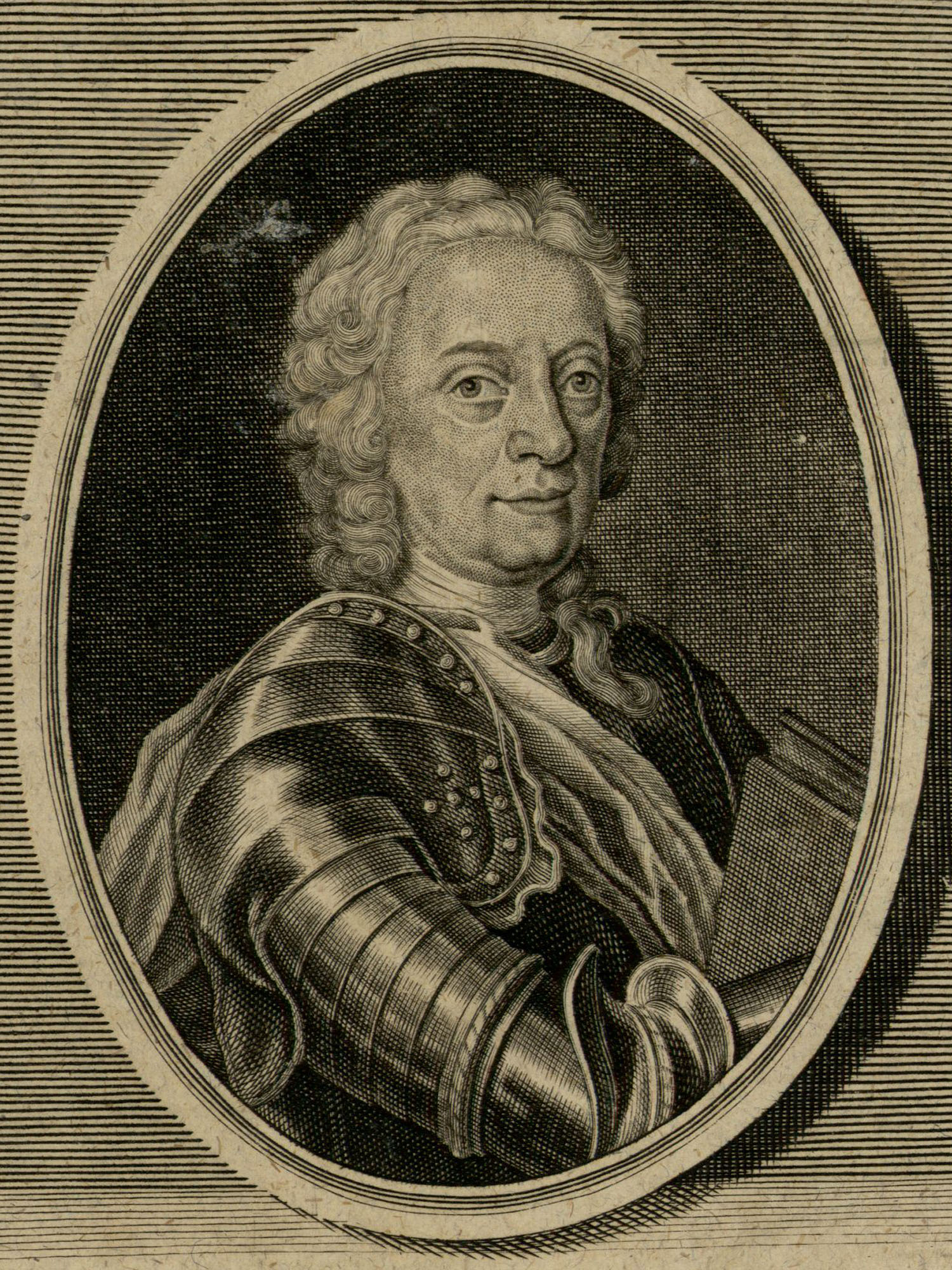 Porträt von Maffei, Scipione  (Zuverläßige Nachrichten von dem gegenwärtigen Zustande der Wissenschaften., 1743, 37. T., ungez. Bl. am Anf. d. Bandes. [Zuschnitt auf Schmuckrahmen])