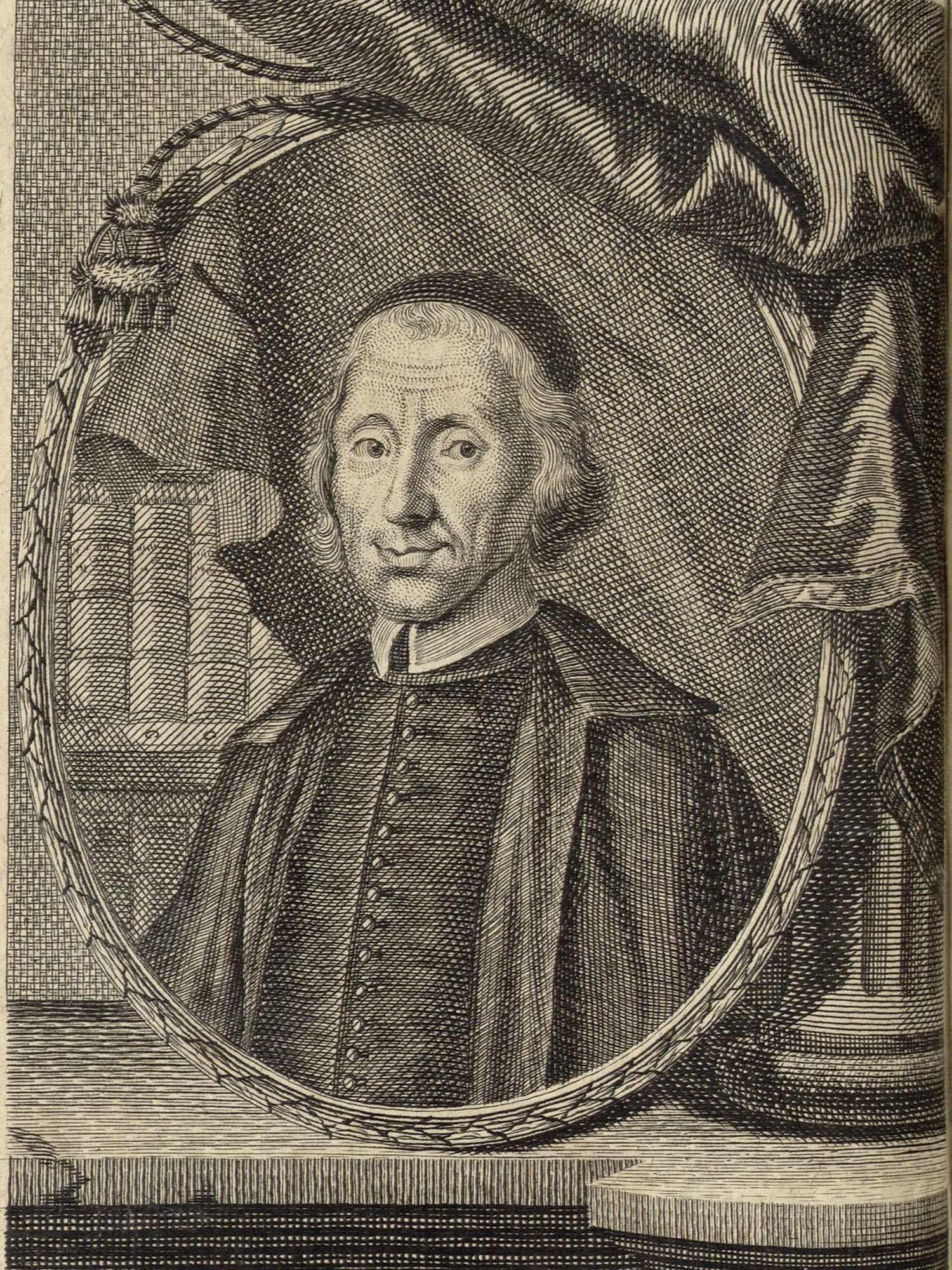 Porträt von Malebranche, Nicolas  (Deutsche Acta Eruditorum., 1716, 40. T., ungez. Bl. vor S. 229. [Zuschnitt auf Schmuckrahmen])