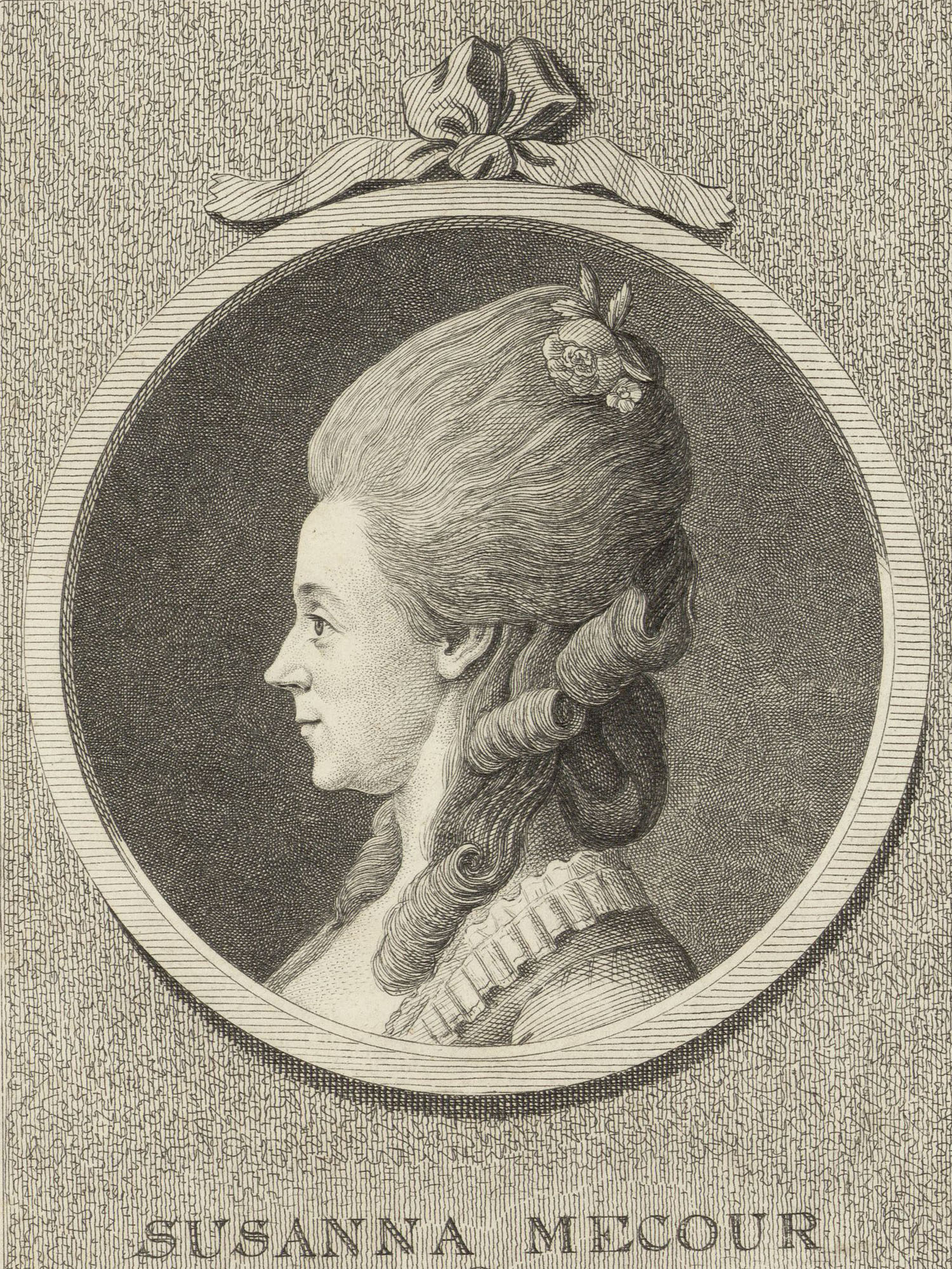 Porträt von Mecour, Susanne  (Litteratur- u. Theater-Zeitung., 1782, 3. T., ungez. Bl. am Anf. d. 3. Teils. [Zuschnitt auf Schmuckrahmen])