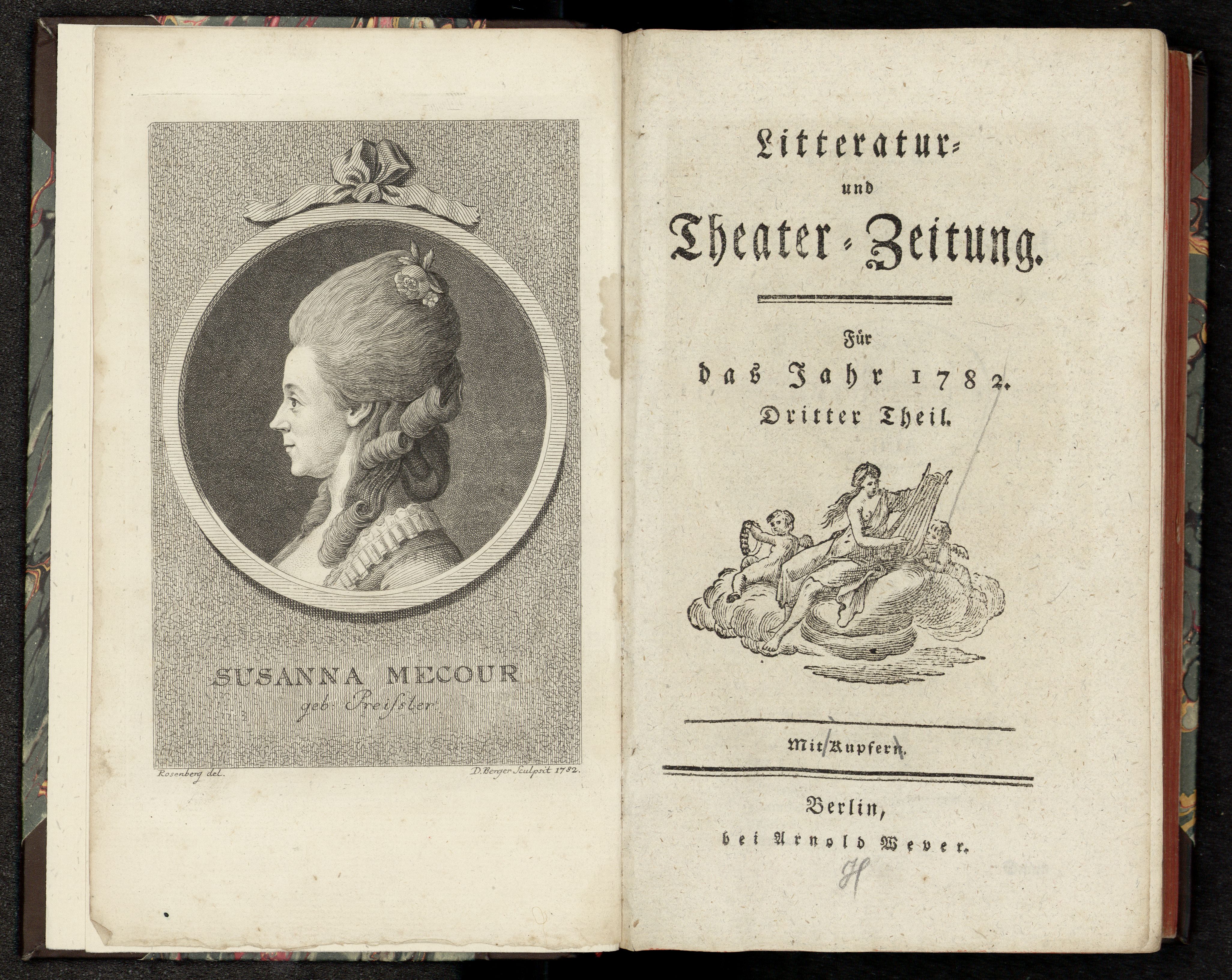 Porträt von Mecour, Susanne  (Litteratur- u. Theater-Zeitung., 1782, 3. T., ungez. Bl. am Anf. d. 3. Teils. [Doppelseite])
