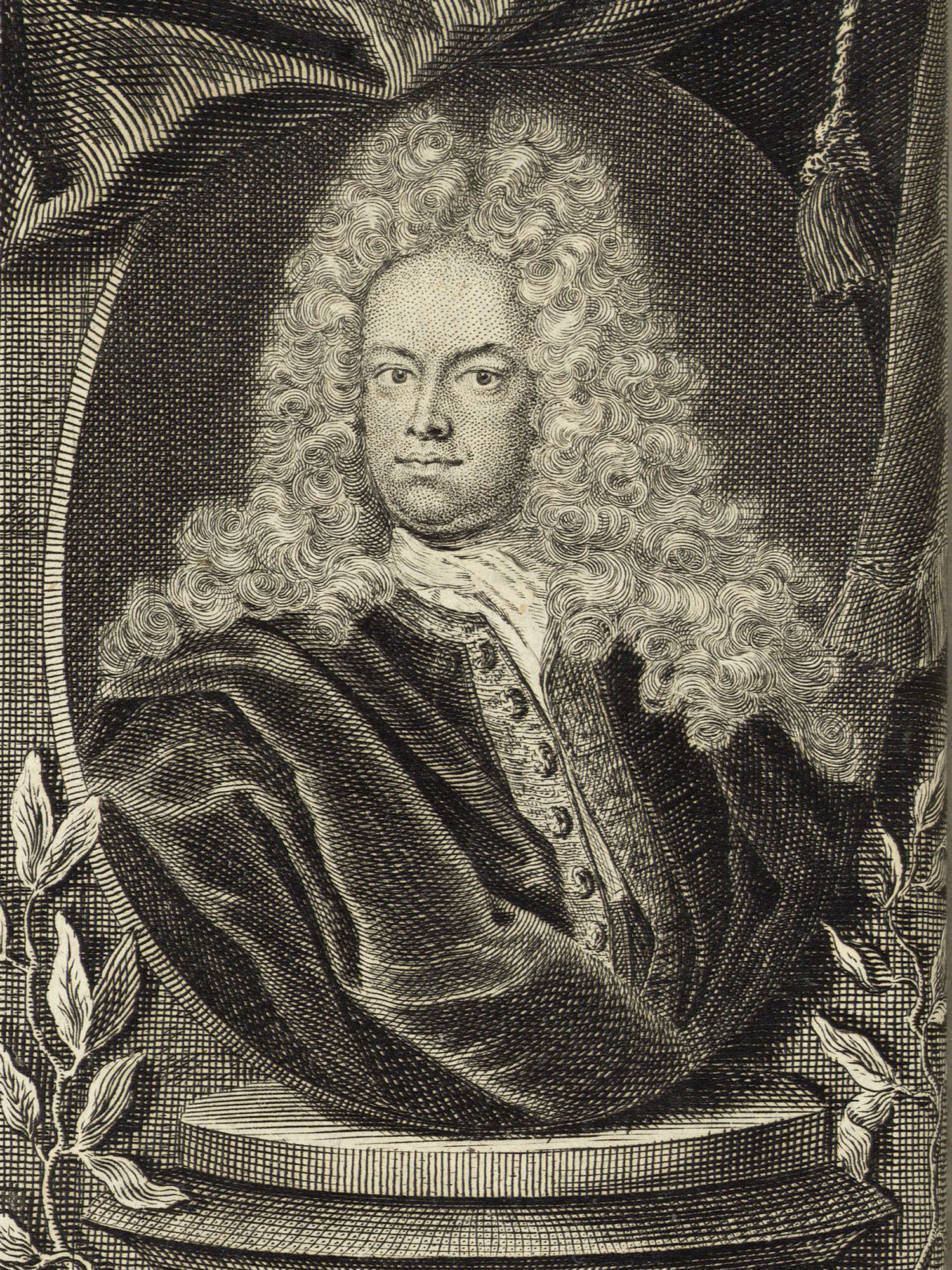Porträt von Mencke, Johann Burkhard  (Deutsche Acta Eruditorum., 1712, 2. T., ungez. Bl. vor S. 90 [Doppelseite])