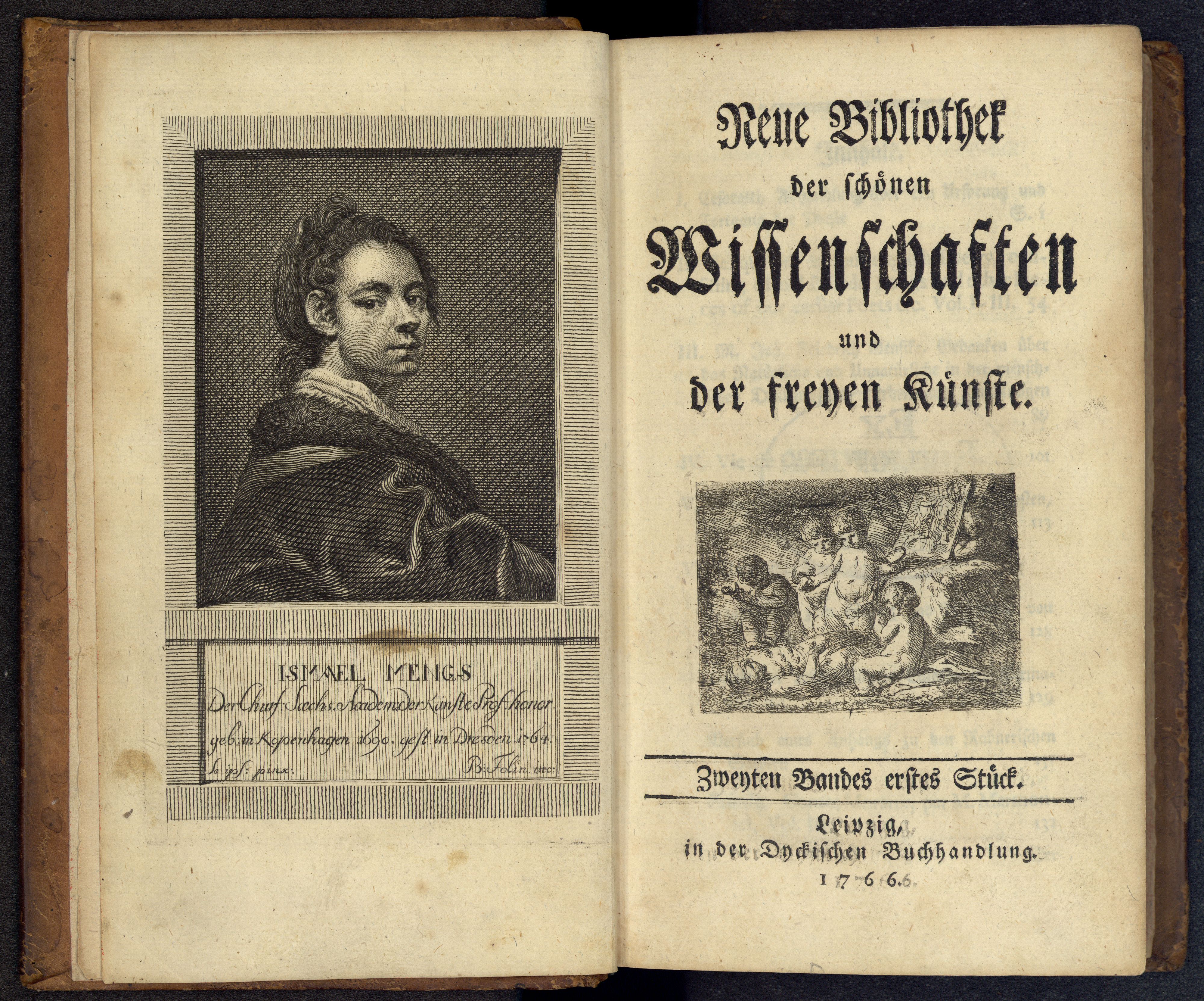 Porträt von Mengs, Ismael  (Neue Bibliothek der schönen Wissenschaften., 1766, 2. Bd., 1. St., ungez. Bl. am Anf. d. Bandes. [Doppelseite])